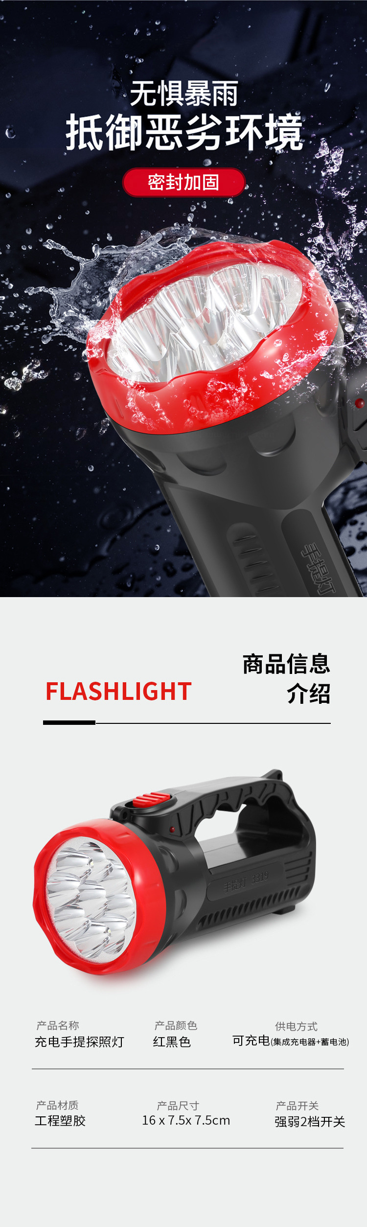 충전식 손전등 야외 강한 빛 서치 손 휴대용 비상 조명 노인 플라스틱 손전등 도매
