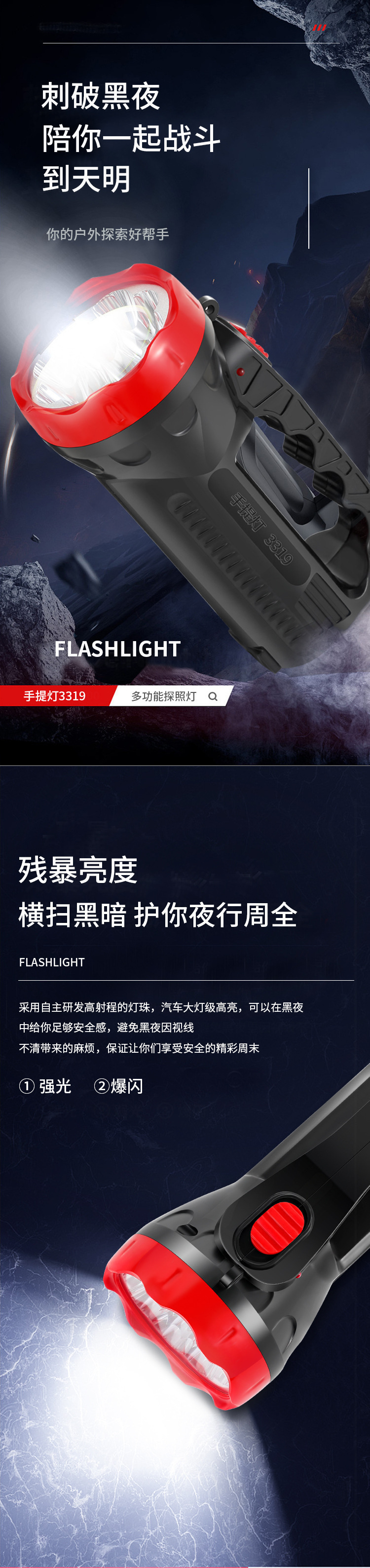 충전식 손전등 야외 강한 빛 서치 손 휴대용 비상 조명 노인 플라스틱 손전등 도매스토어 가기