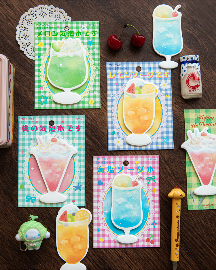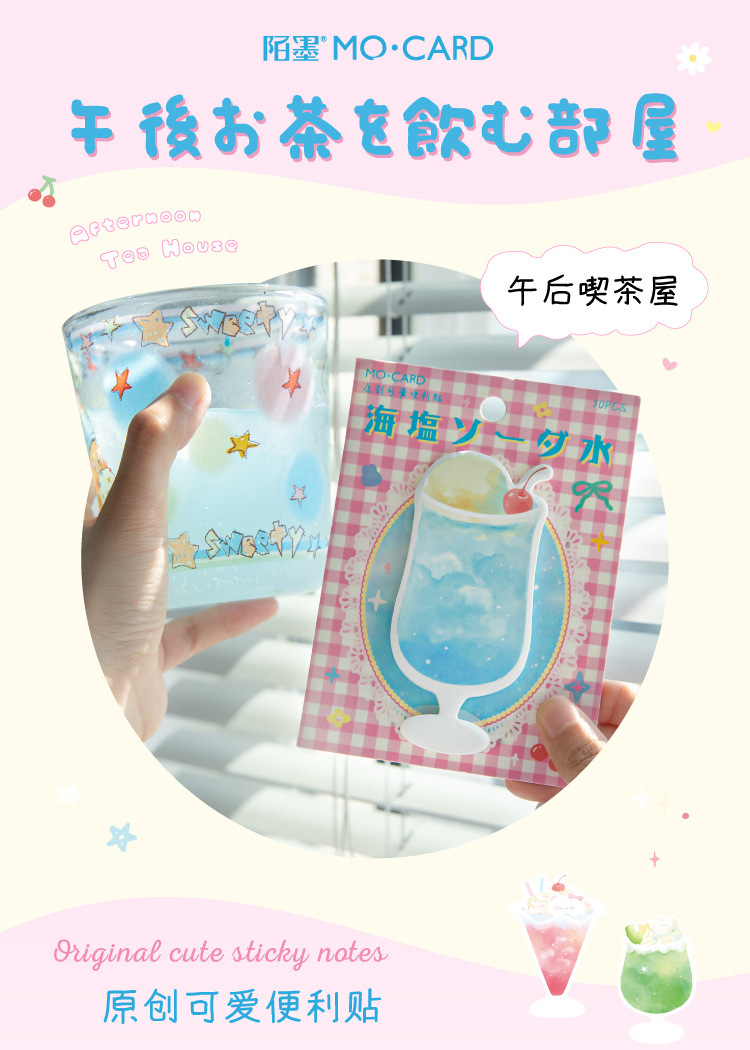 Mo Mo 흰색 크래프트 종이 스티커 메모 오후 찻집 캐주얼 테마 메시지 노트 DIY 스티커 메모스토어 가기