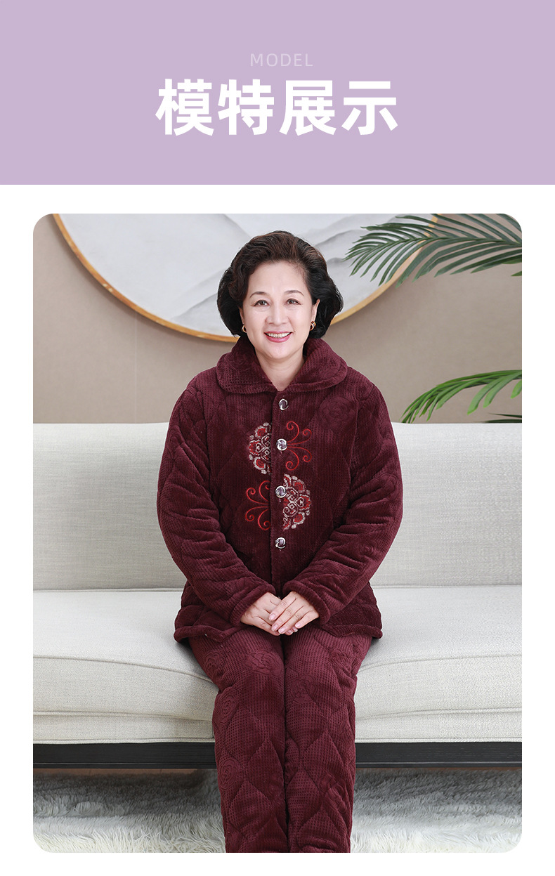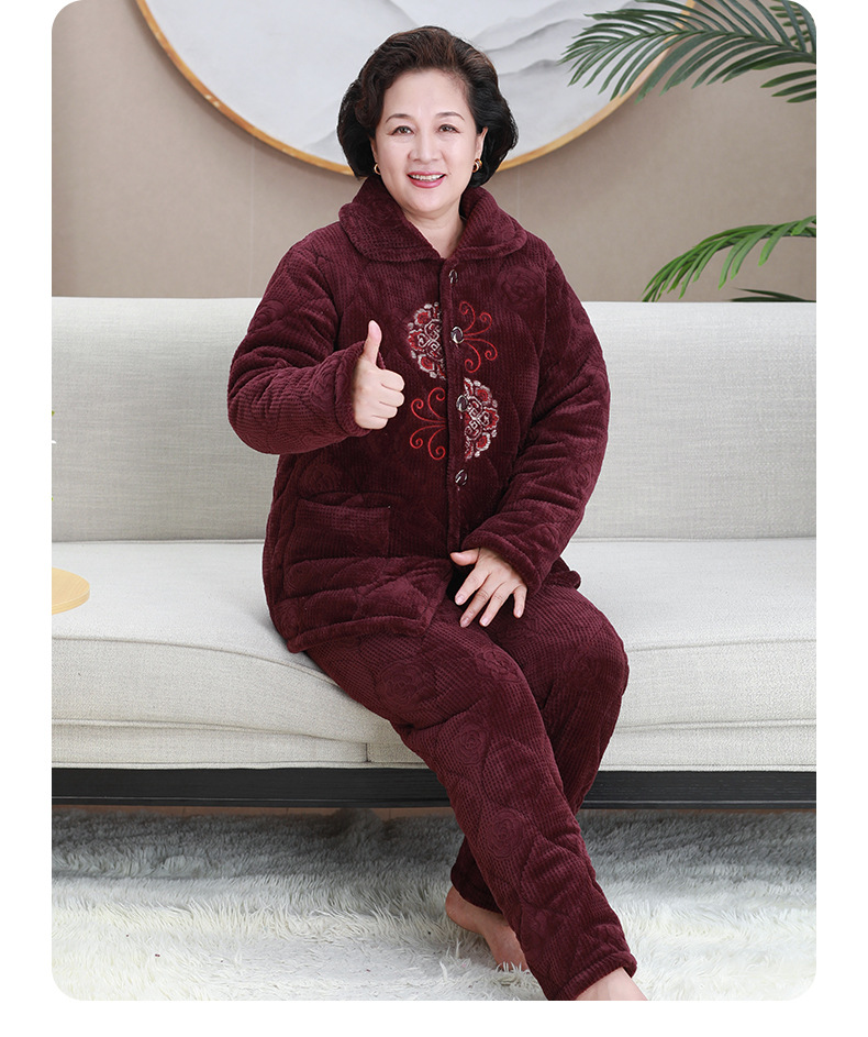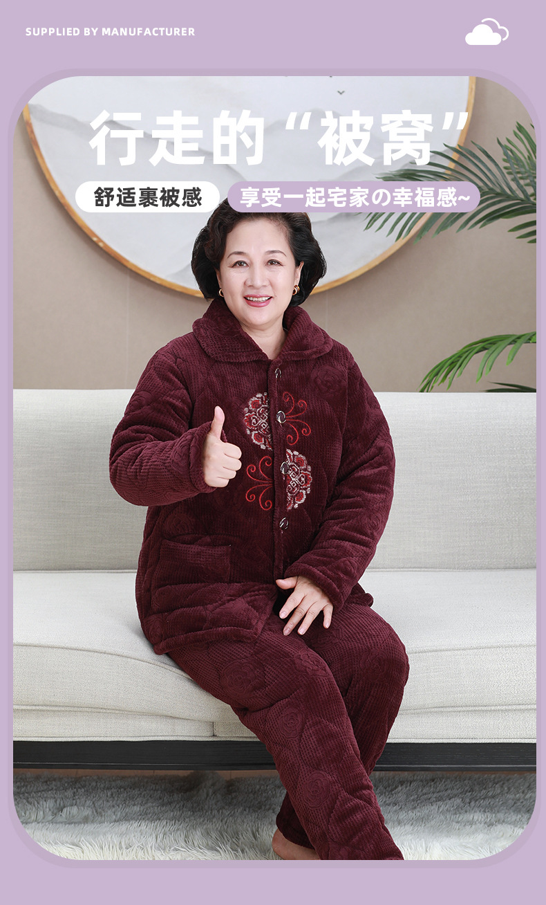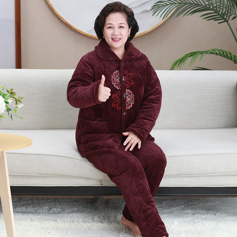 중년 및 노인 여성 겨울 벨벳 두꺼운 산호 벨벳 노인 할머니 따뜻한 양복 어머니의 가정복