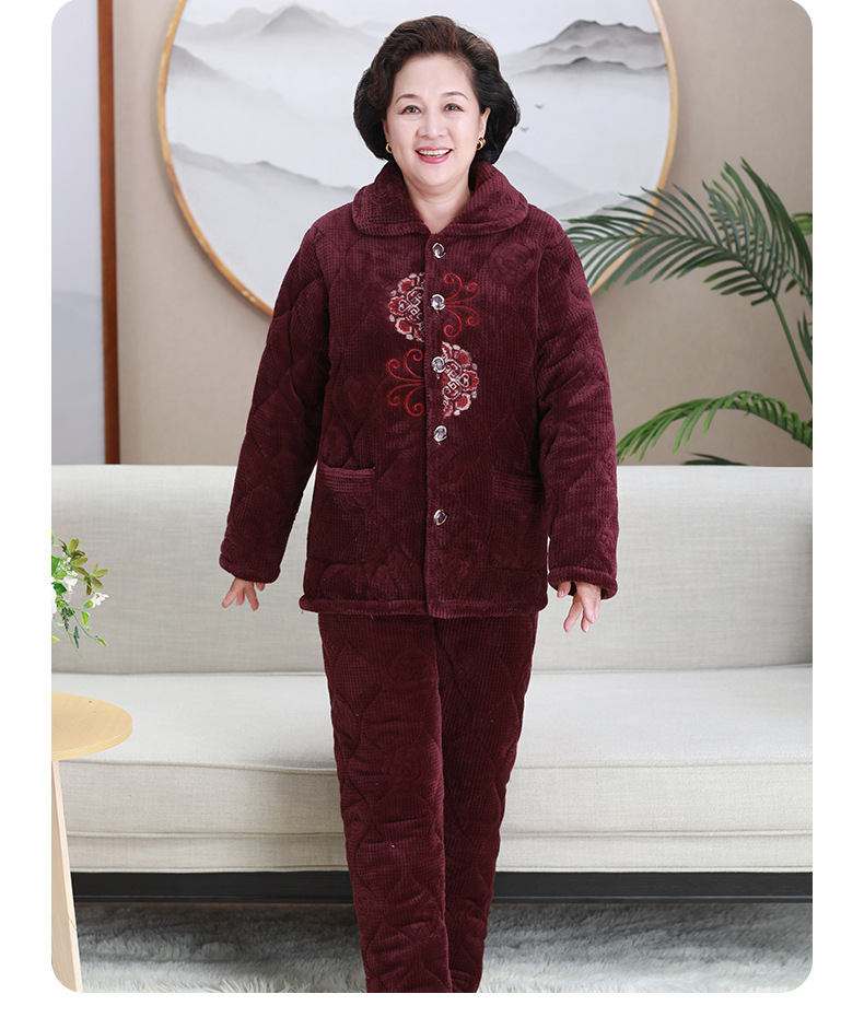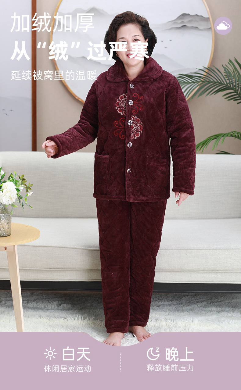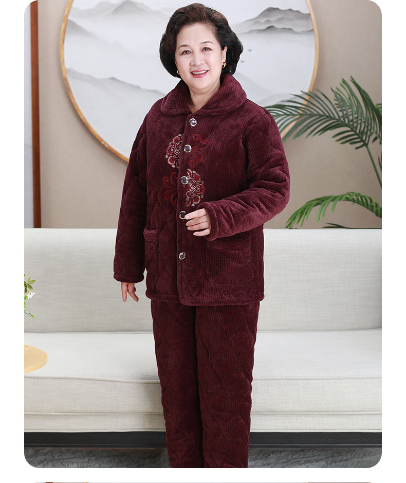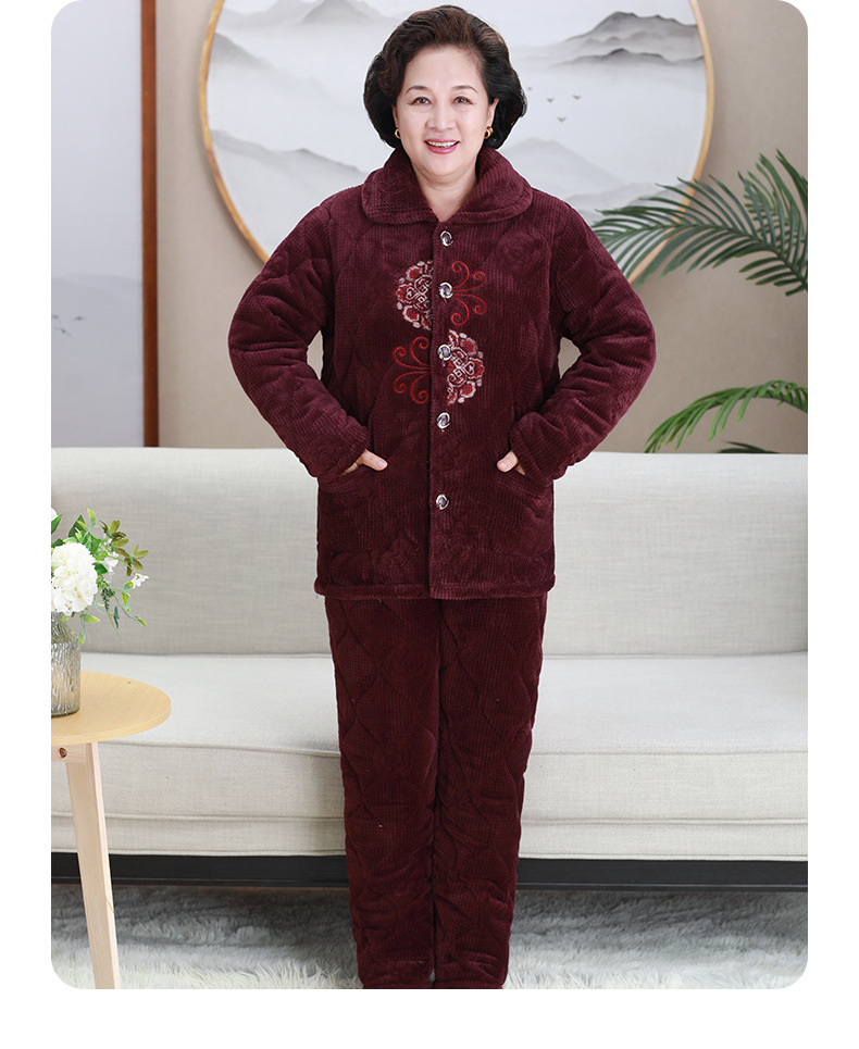 중년 및 노인 여성 겨울 벨벳 두꺼운 산호 벨벳 노인 할머니 따뜻한 양복 어머니의 가정복