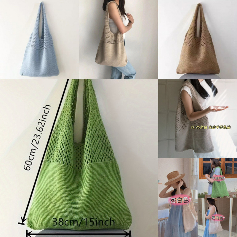 새로운 한국 스타일 싱글 숄더 중공 캐주얼 한국 대용량 짠 여성용 가방 울 완제품 조끼 쇼핑백 니트