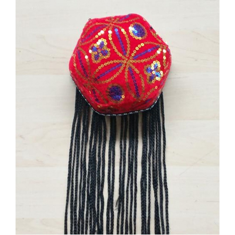 머리 장식 육각형 땋은 머리 신장 소형 성인 민족 모자 공연 위구어 꽃 모자 남성과 여성 댄스 밀 모자