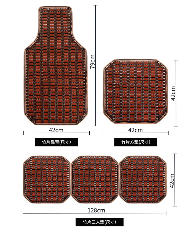 자동차 시트 쿠션, 트럭용 냉각 쿠션, 아이스 실크 범용 대나무 쿠션, 5인승 쿠션, 여름철 통풍이 잘되는 일체형 3피스