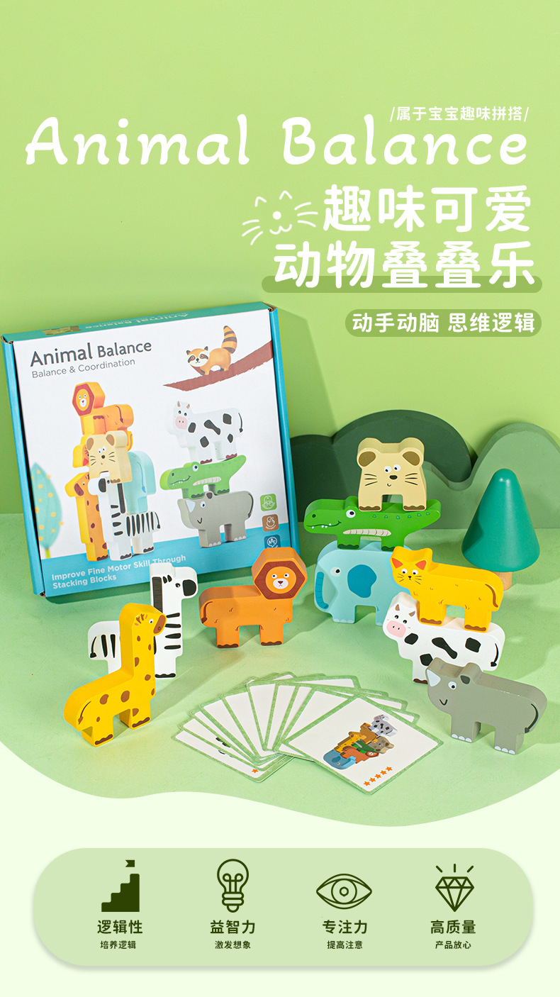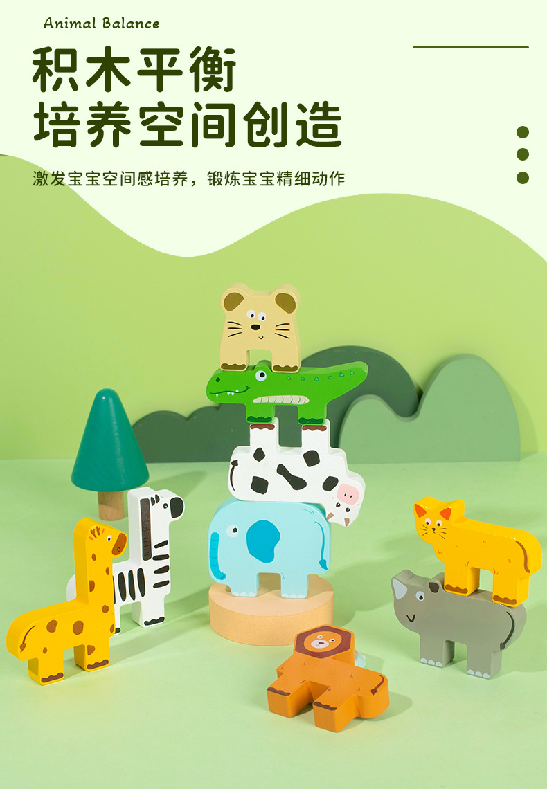 나무 어린이 동물 균형 스태킹 유치원 동물 패턴인지 스태킹 조기 교육 교육 빌딩 블록 장난감스토어 가기