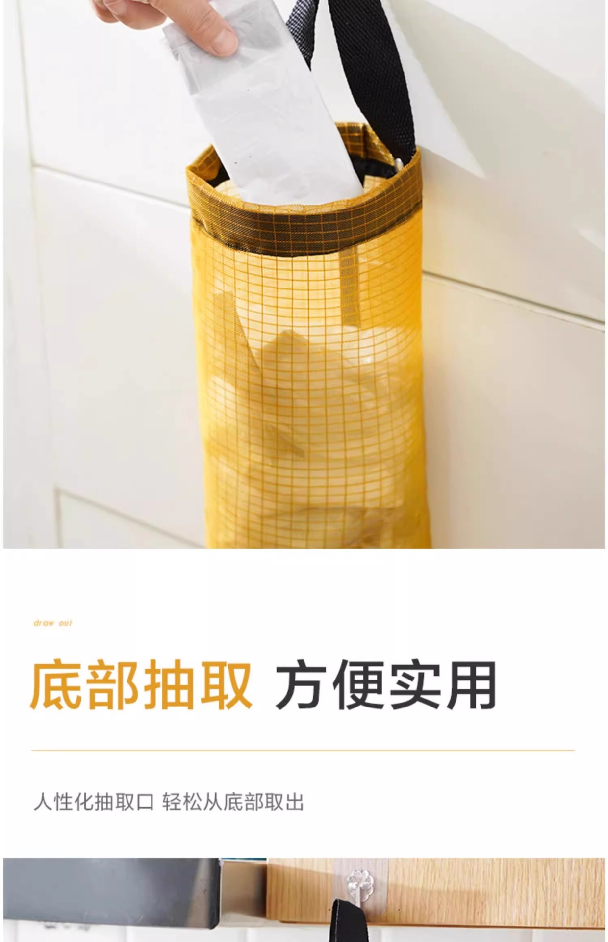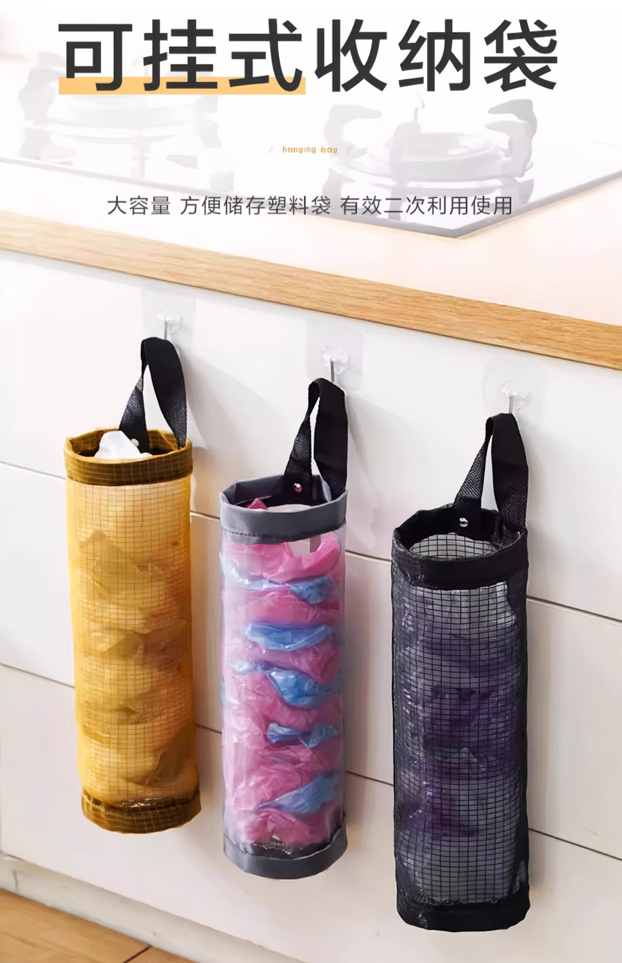 벽걸이형 쓰레기 봉투 보관 주방 비닐 봉투 수집 가정용 펀치 없는 탈착식 보관 메쉬 가방 걸이형 가방