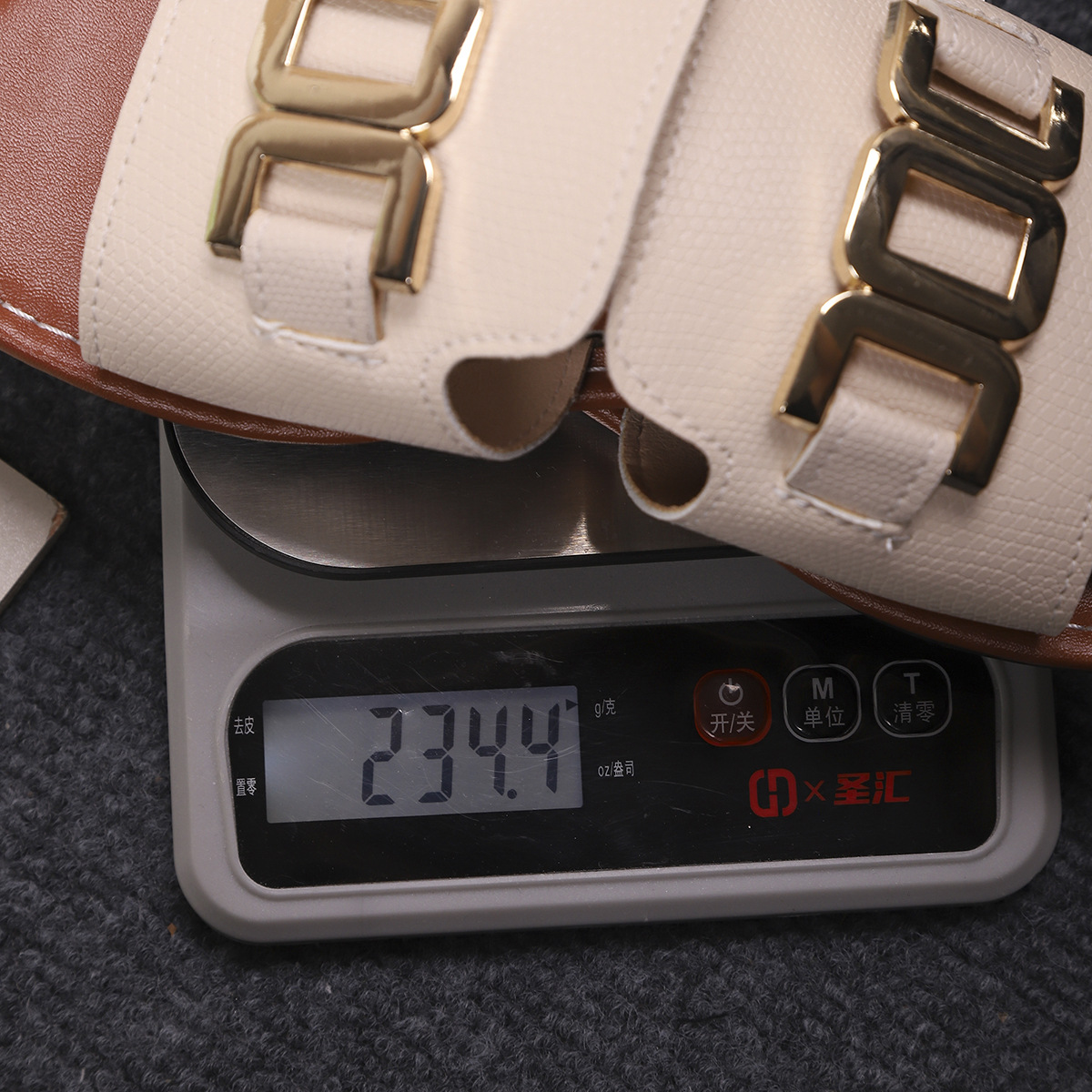 동남 아시아 대외 무역 여성을위한 새로운 스타일의 플랫 오픈 발가락 슬리퍼 크로스 보더 대형 금속 버클 피쉬 입 비치 샌들