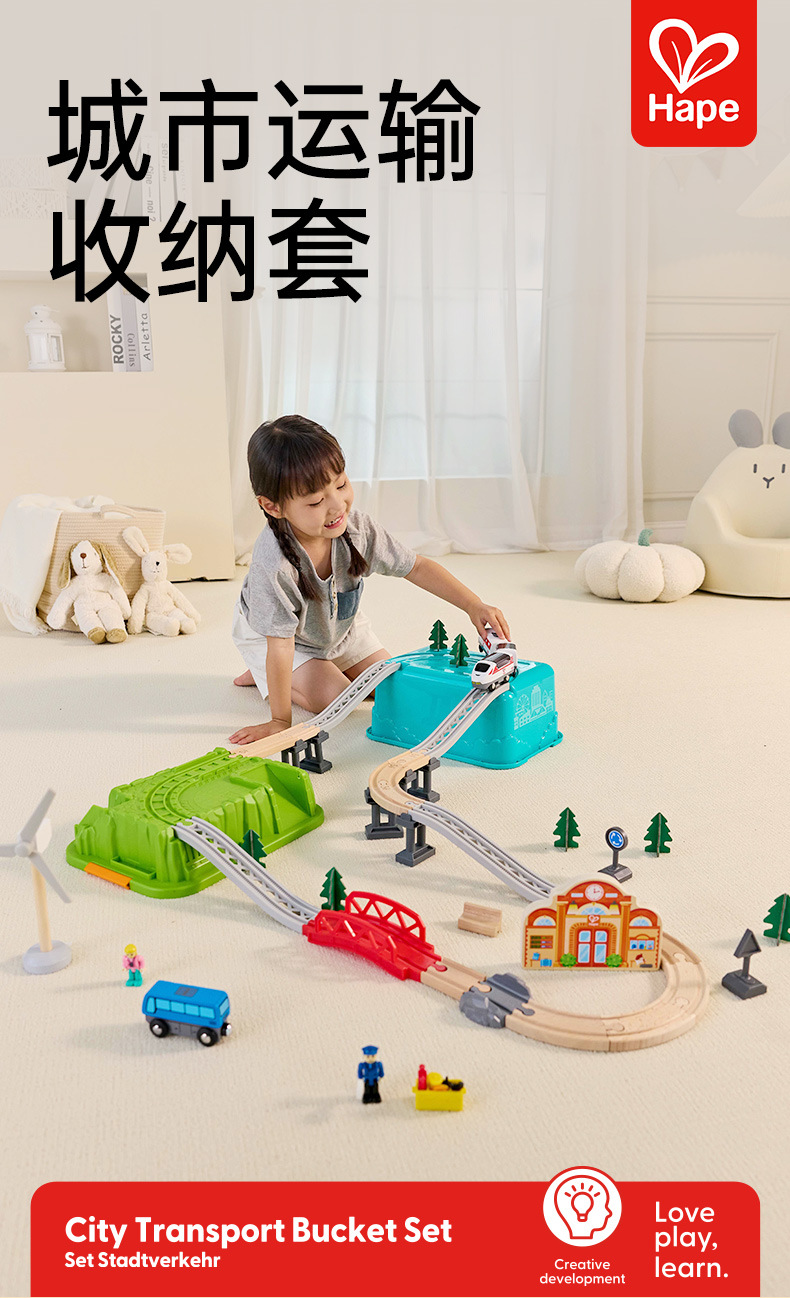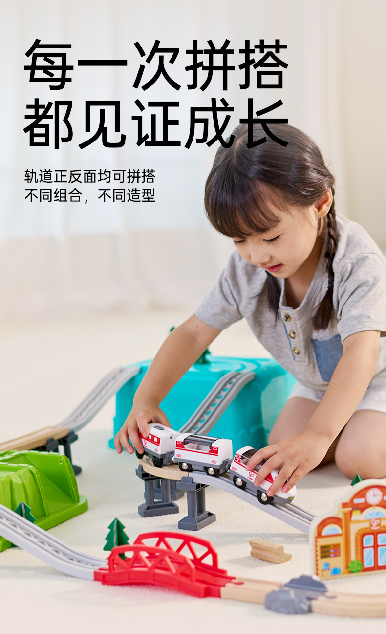 Hape North District 특별 기차 트랙 장난감 빌딩 블록 보관 세트 어린이 교육 전기 기관차 세트
