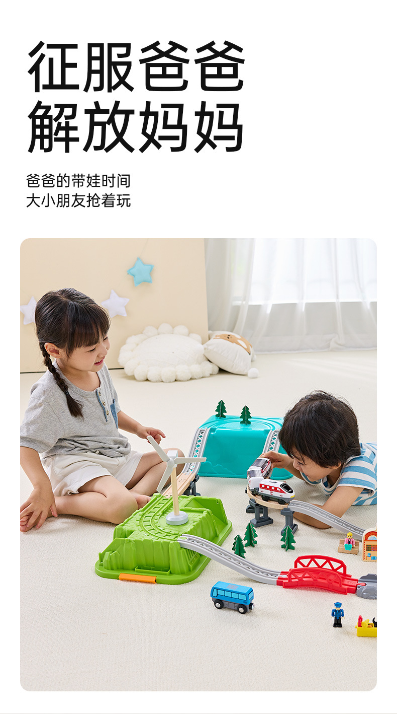 Hape North District 특별 기차 트랙 장난감 빌딩 블록 보관 세트 어린이 교육 전기 기관차 세트스토어 가기