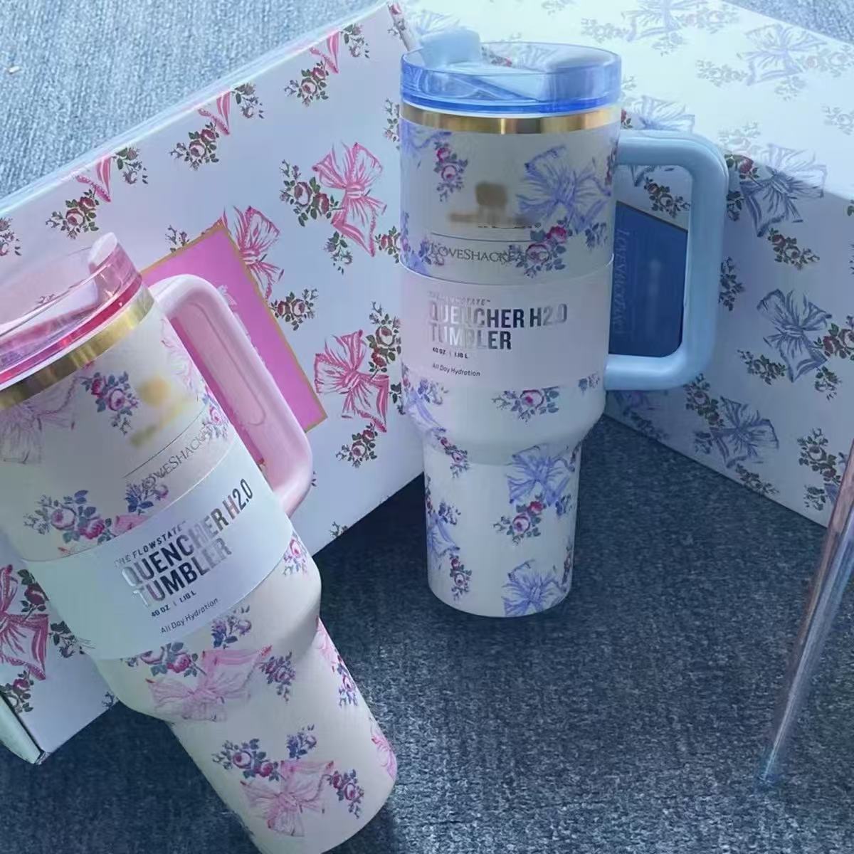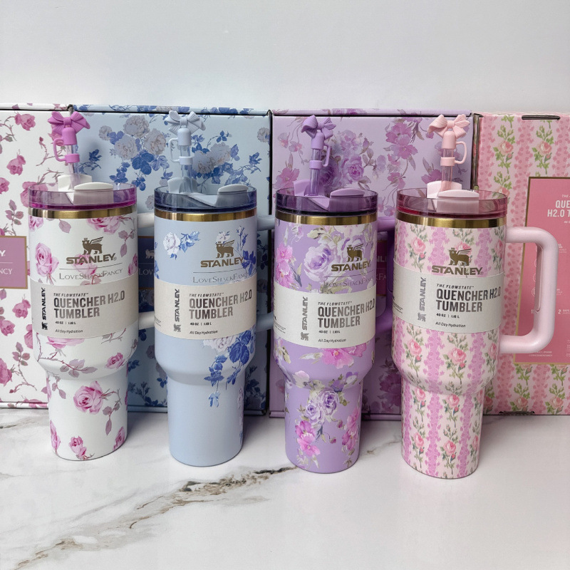 국경을 넘는 스탠다르드 같은 스타일의 러브 가든 콜라보레이션 보온병 프린트 40온스 자동차 컵 대형 물병스토어 가기