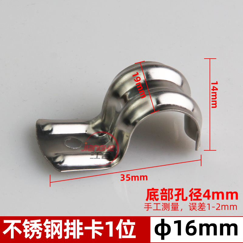 단일 측면 승마 카드 두꺼운 스테인레스 스틸 파이프 클립 P 형 U 옴 카드 16 행 카드 20 라인 파이프 클립 버클 고정 파이프 클립