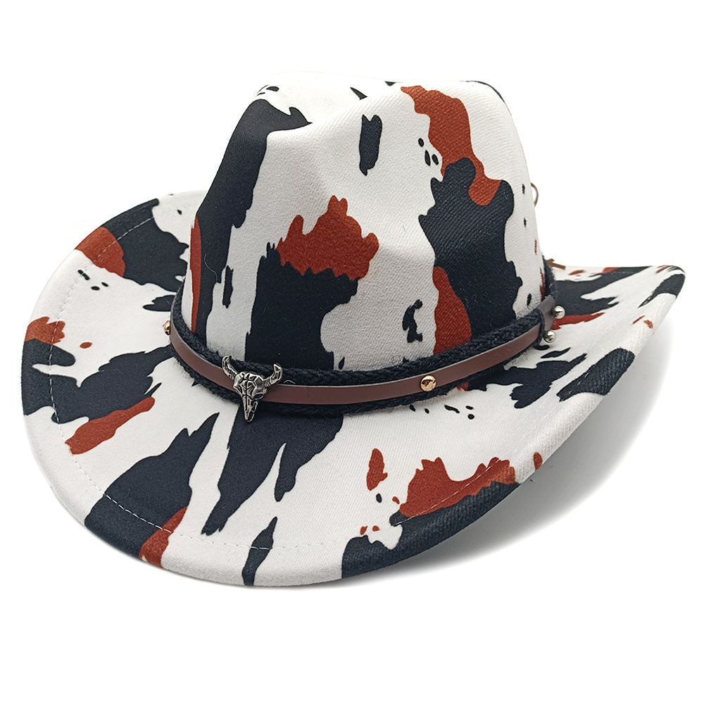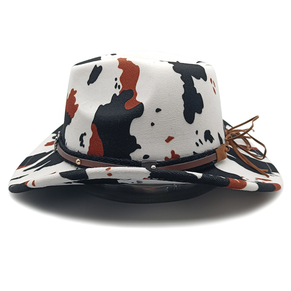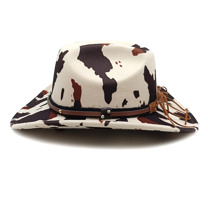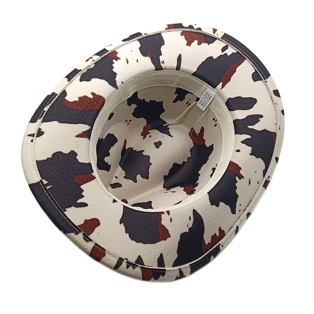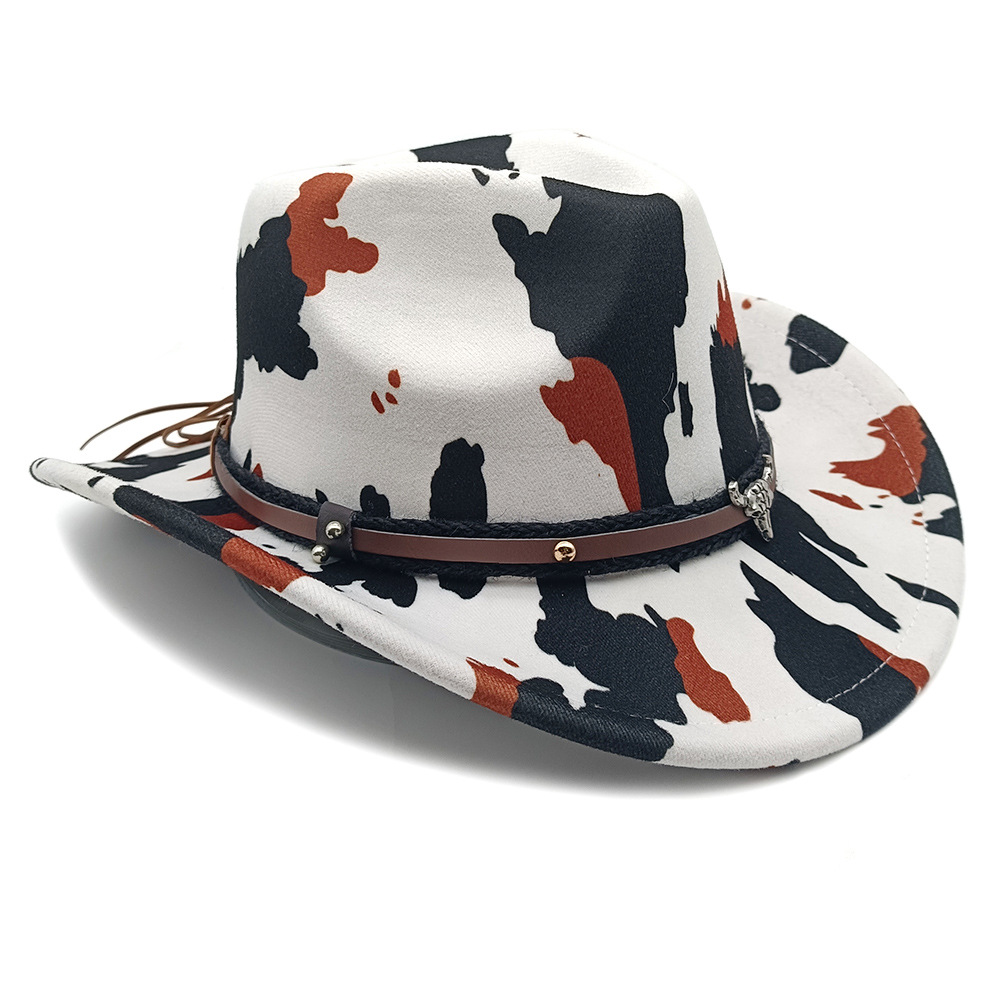 유럽과 미국의 새로운 서양 카우보이 모자 재즈 모자 복고풍 소 무늬 프린트 챙 모자 태양 보호 등산 모자
