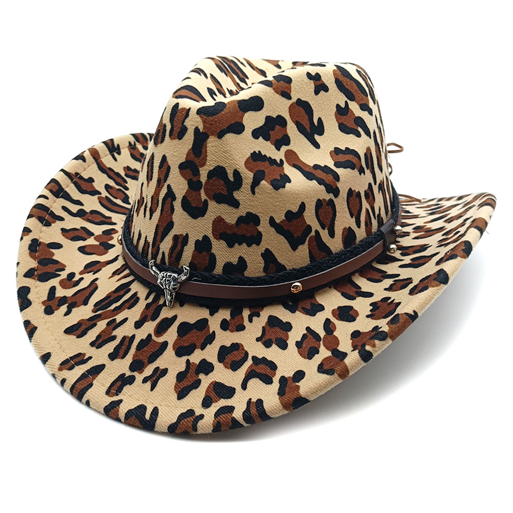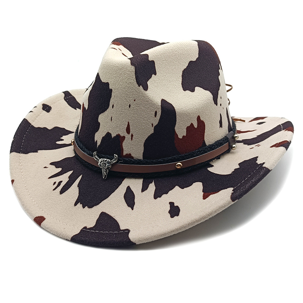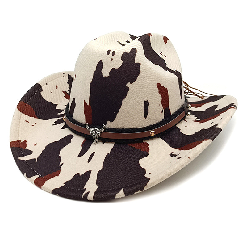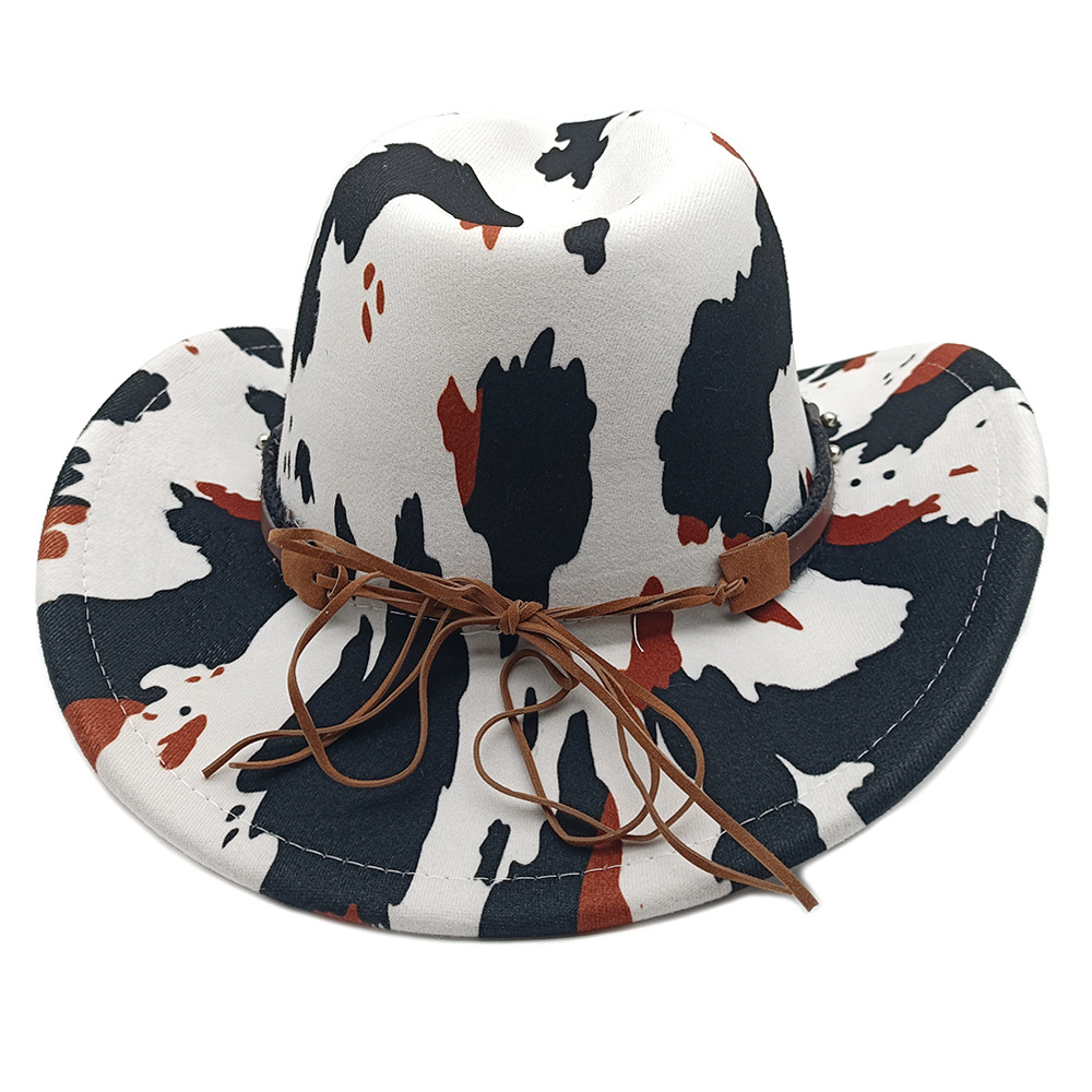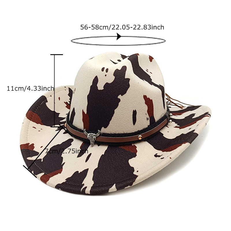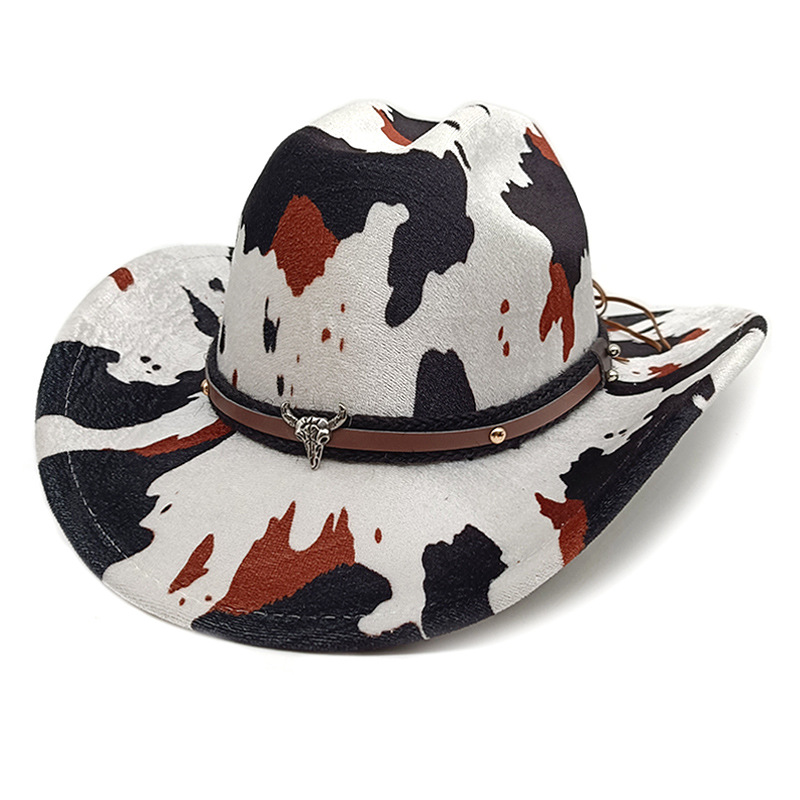 유럽과 미국의 새로운 서양 카우보이 모자 재즈 모자 복고풍 소 무늬 프린트 챙 모자 태양 보호 등산 모자