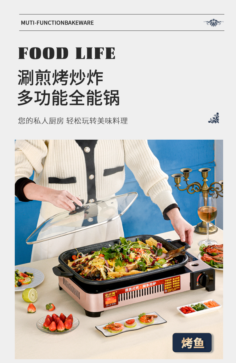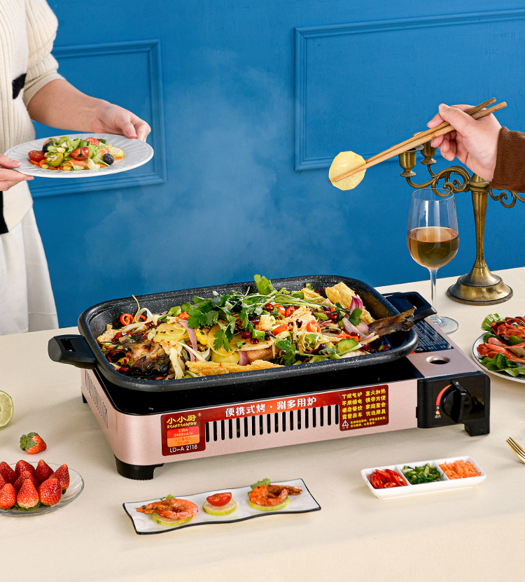작은 주방 카세트 스토브, 상업용 생선 구이 스토브, 종이 포장 생선 특수 냄비, 휴대용 바베큐 냄비, 가정용 가스 생선 구이 플레이트
