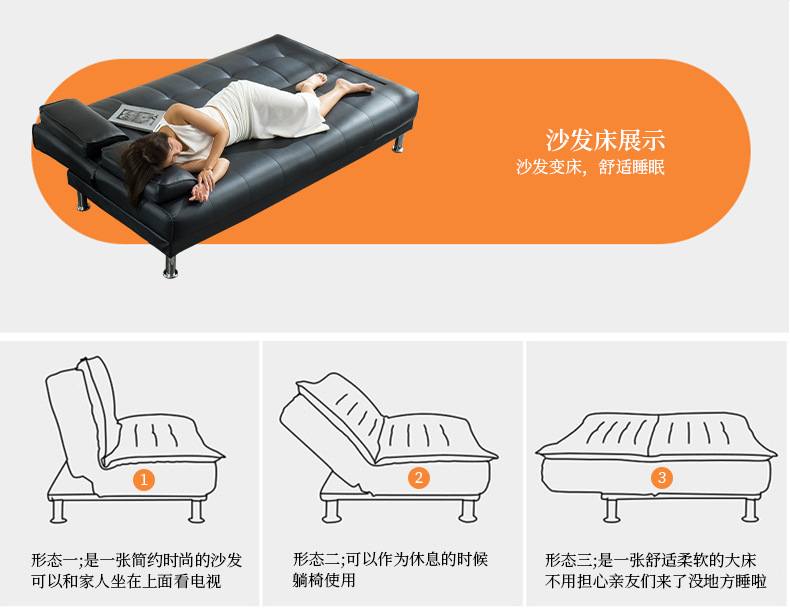 사무실 점심 시간 리셉션 3인용 가죽 아트 소파 소형 가족 접이식 간단한 이중 목적 다기능 소파 베드스토어 가기