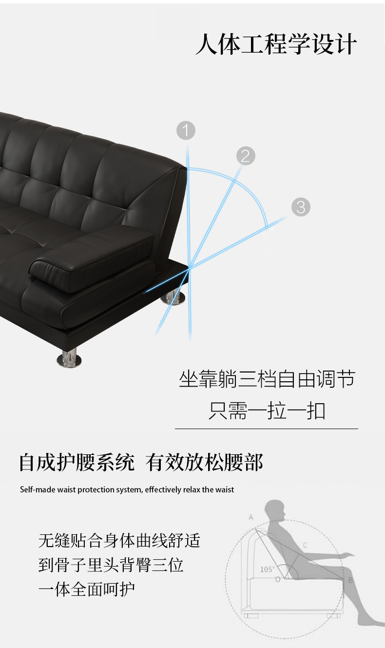 사무실 점심 시간 리셉션 3인용 가죽 아트 소파 소형 가족 접이식 간단한 이중 목적 다기능 소파 베드