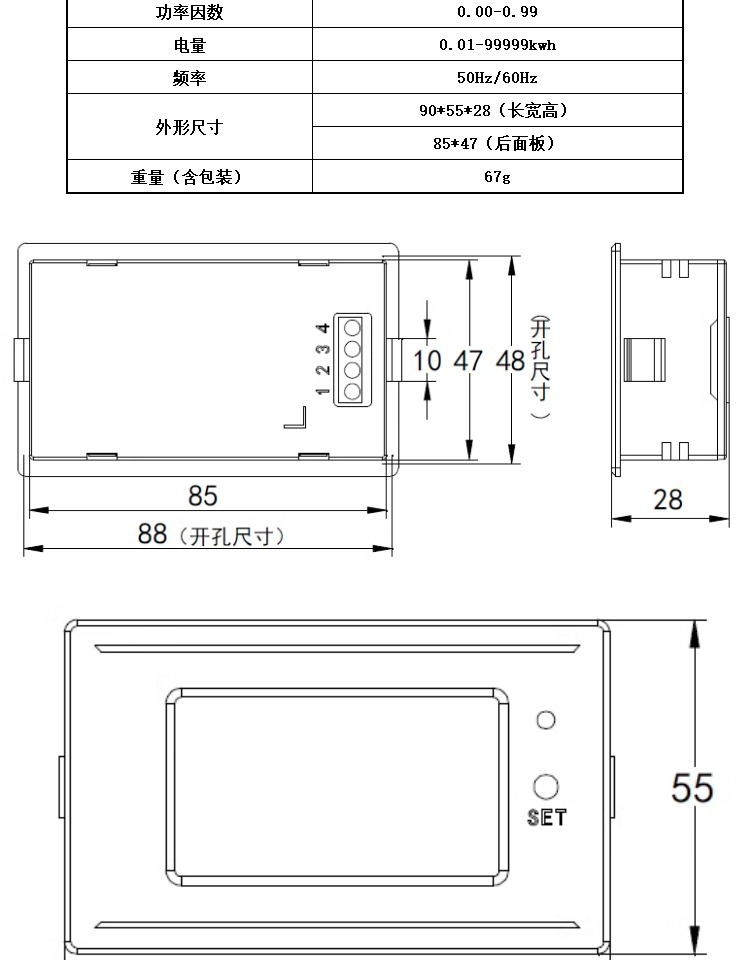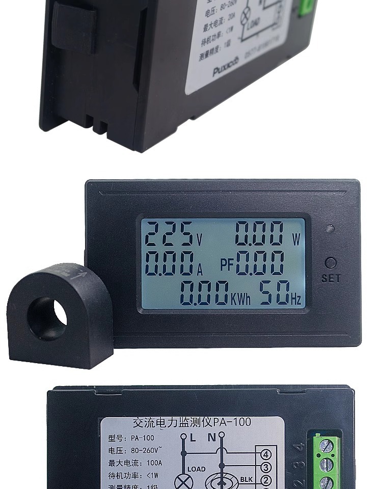 AC 다기능 미터 전력량계 전압 전류 전력 AC220V 디지털 디스플레이 100A 전력 디스플레이 패널 미터