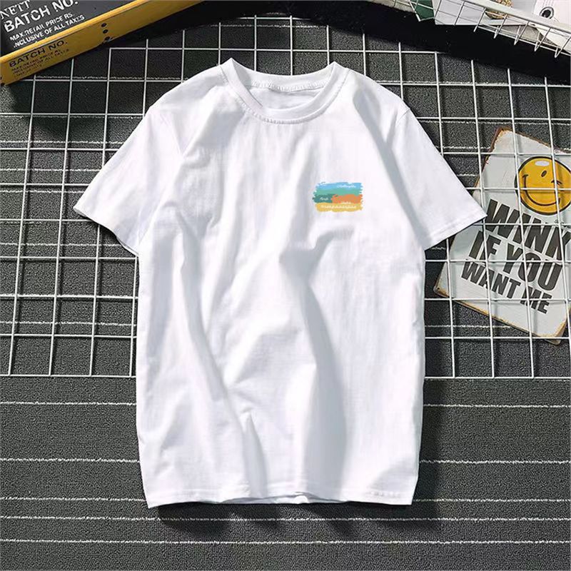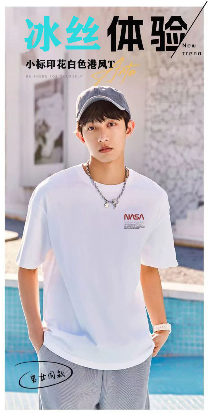 아이스 실크 시원한 반팔 남성용 루즈 학생 흑백 반팔 티셔츠 여름 트렌디 라운드 넥 티셔츠 다용도 바닥 셔츠스토어 가기