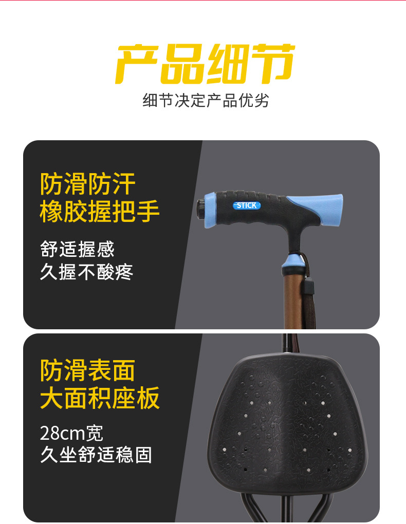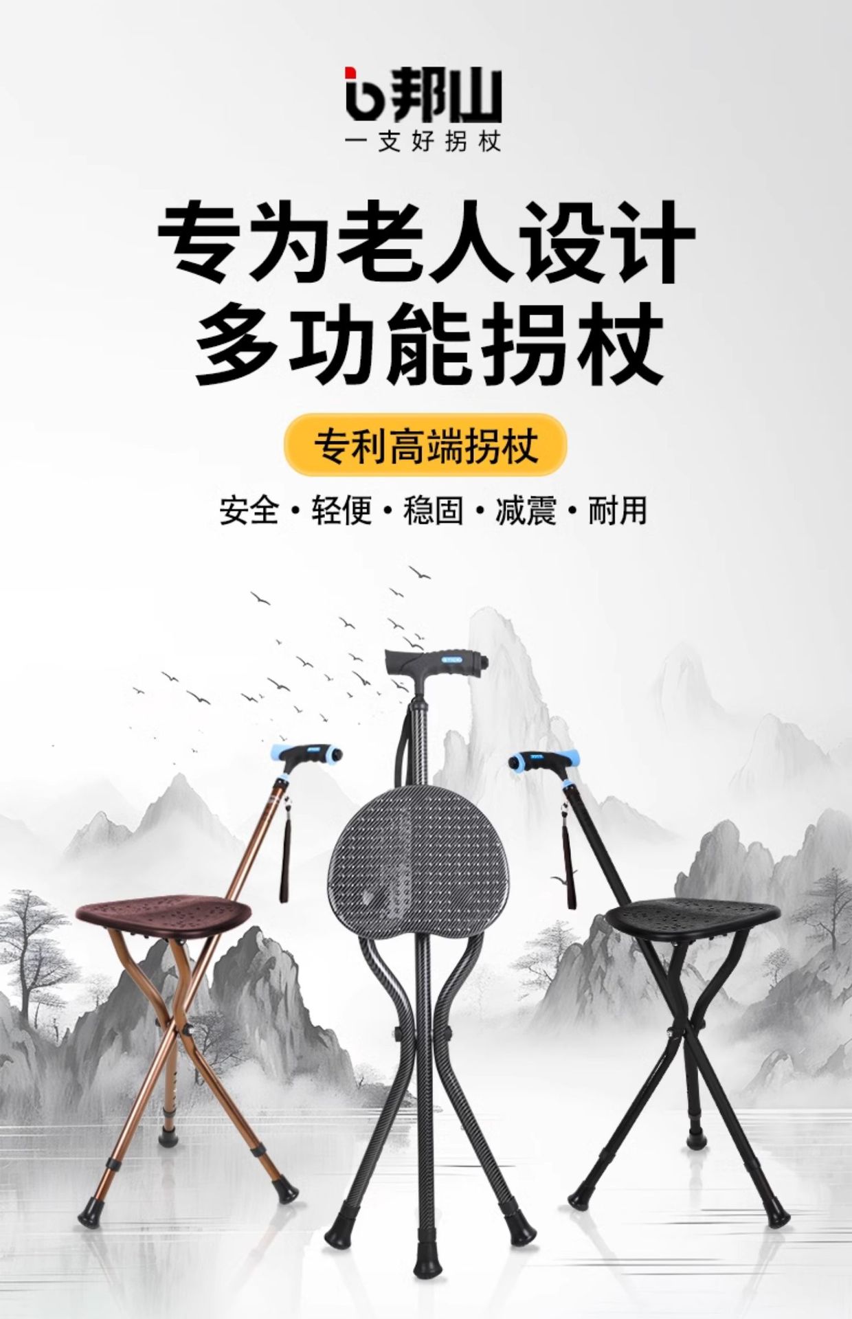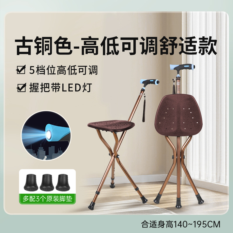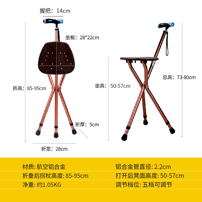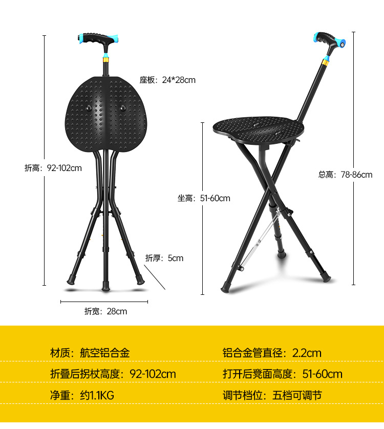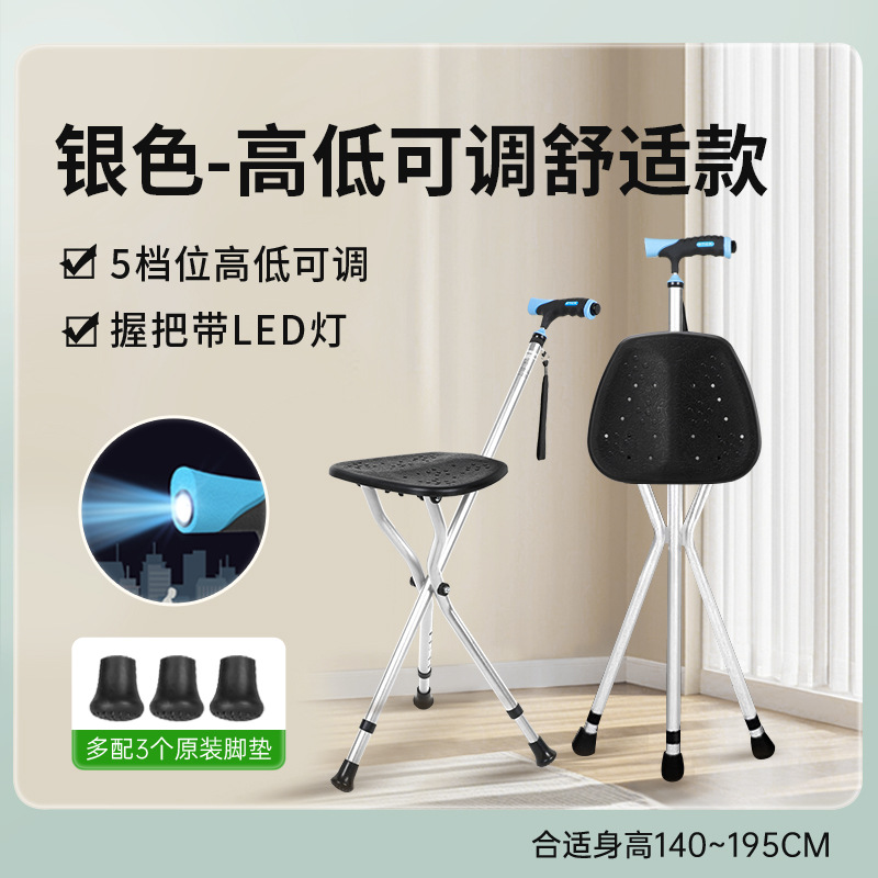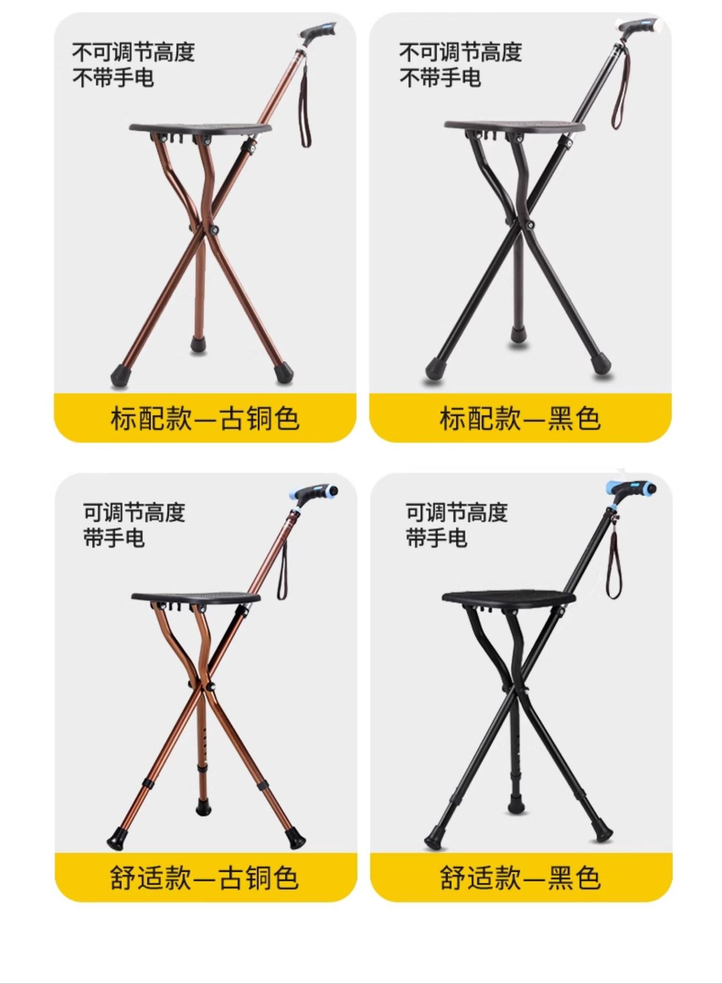 Fanshoubangshan 노인 지팡이 접이식 의자 노인을위한 휴대용 낙하 방지 지팡이 의자 이중 목적 지팡이 보행 보조 장치