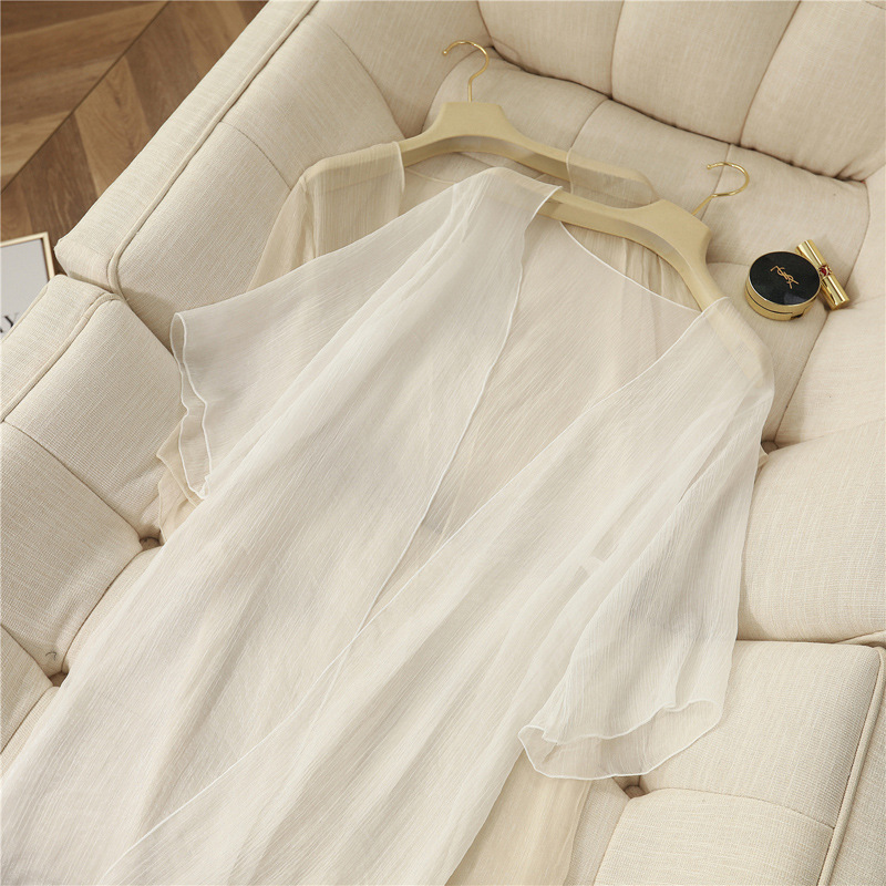 여성용 쉬폰 자외선 차단 의류, 중간 길이 여름 튤 가디건 재킷, 작은 양복 조끼, 서스펜더 스커트, 숄 블라우스
