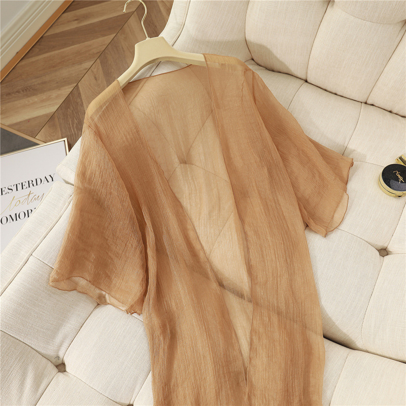 여성용 쉬폰 자외선 차단 의류, 중간 길이 여름 튤 가디건 재킷, 작은 양복 조끼, 서스펜더 스커트, 숄 블라우스스토어 가기