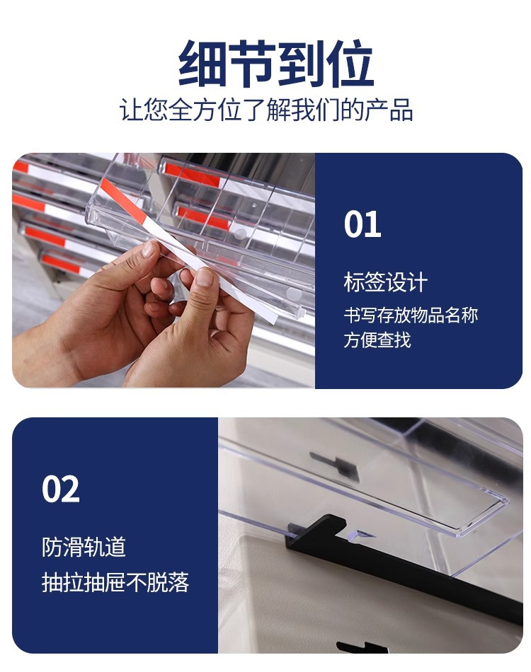 • 문이 없는 이중 행 12개 서랍(높이 12cm)