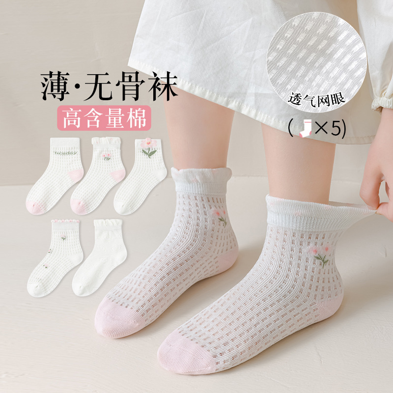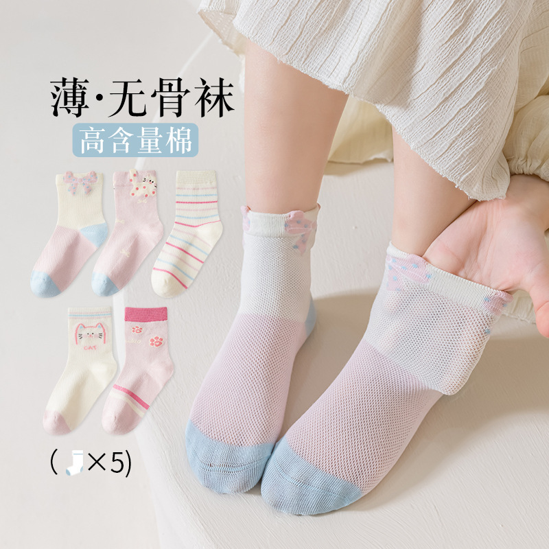 뼈없는 안티 필링 메쉬 카시 어린이 면 양말 봄과 여름 초박형 통기성 남성과 여성의 아기 중대형 어린이 짧은 양말