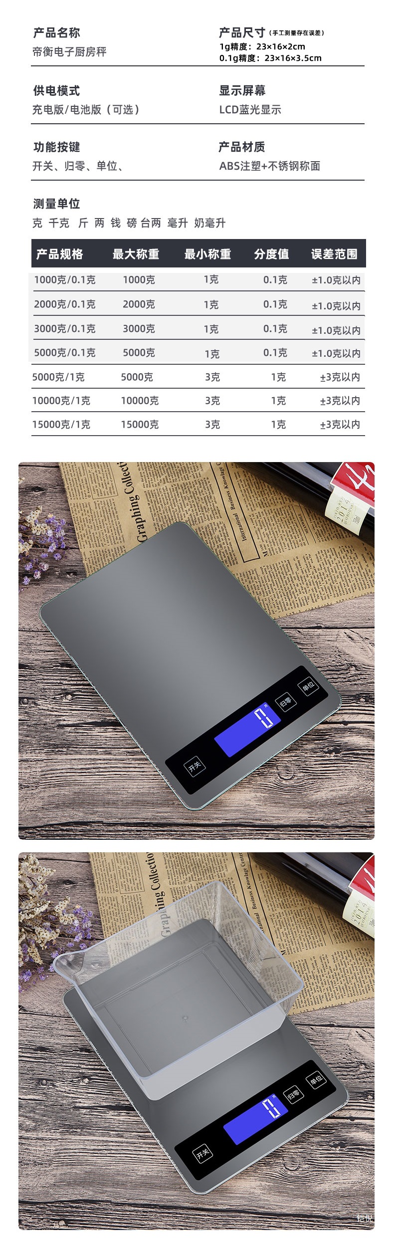 • 충전식 3회용 버전: 15kg/1g 무료: 계량컵 + 트레이 + 무게