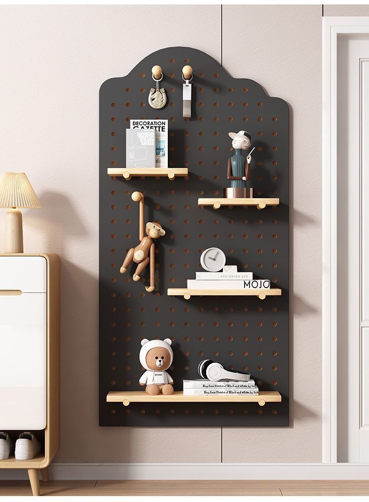 홀 보드 입구 벽 수납 선반 벽 단단한 나무 교수형 보드 입구 칸막이 수납 선반 벽 디스플레이 선반 도매스토어 가기