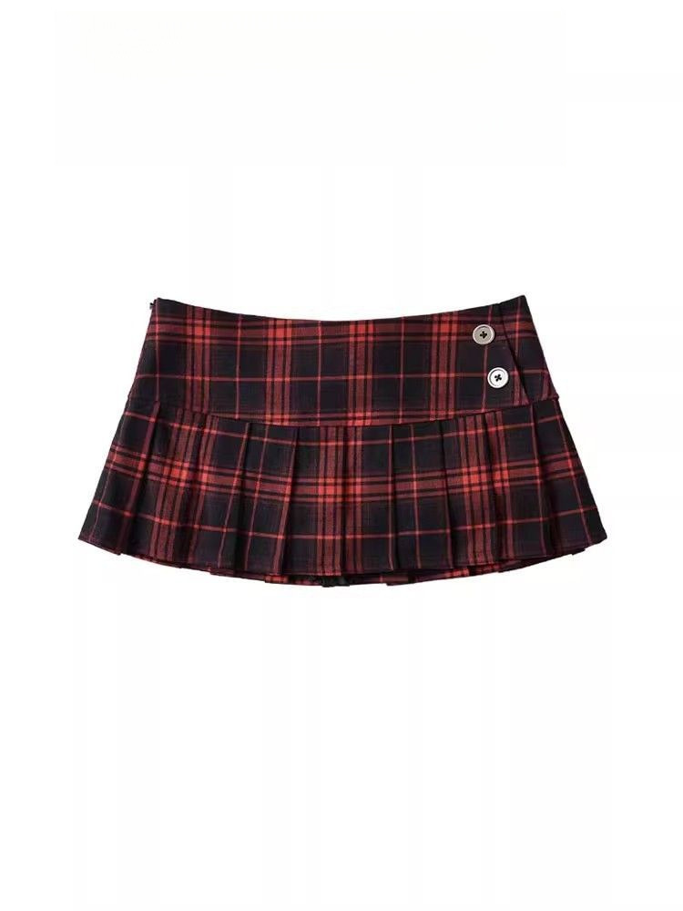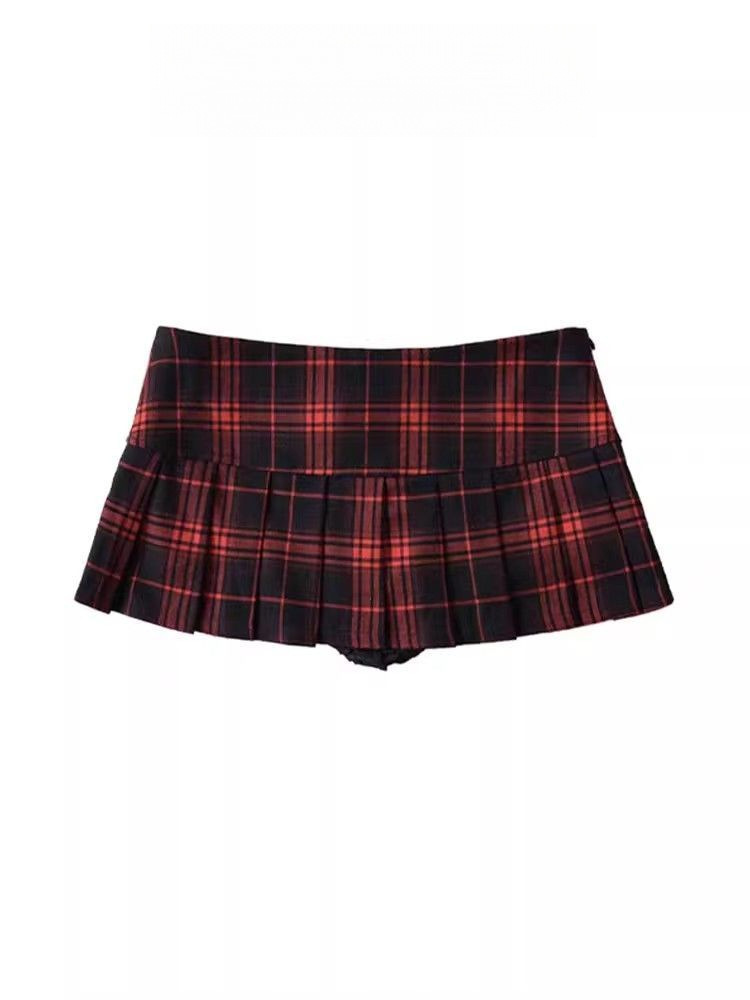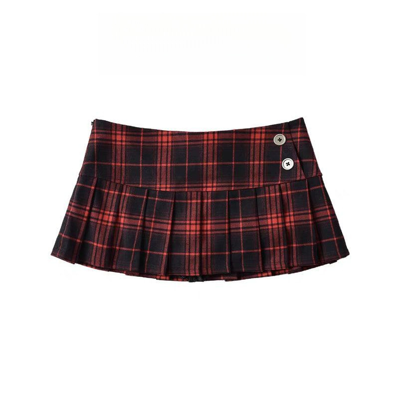 여성을 위한 미국 복고풍 JK 스타일 로우 웨이스트 체크 무늬 미니 스커트, 봄 여름 핫걸 노출 방지 및 다리 길이 A라인 플리츠 스커트