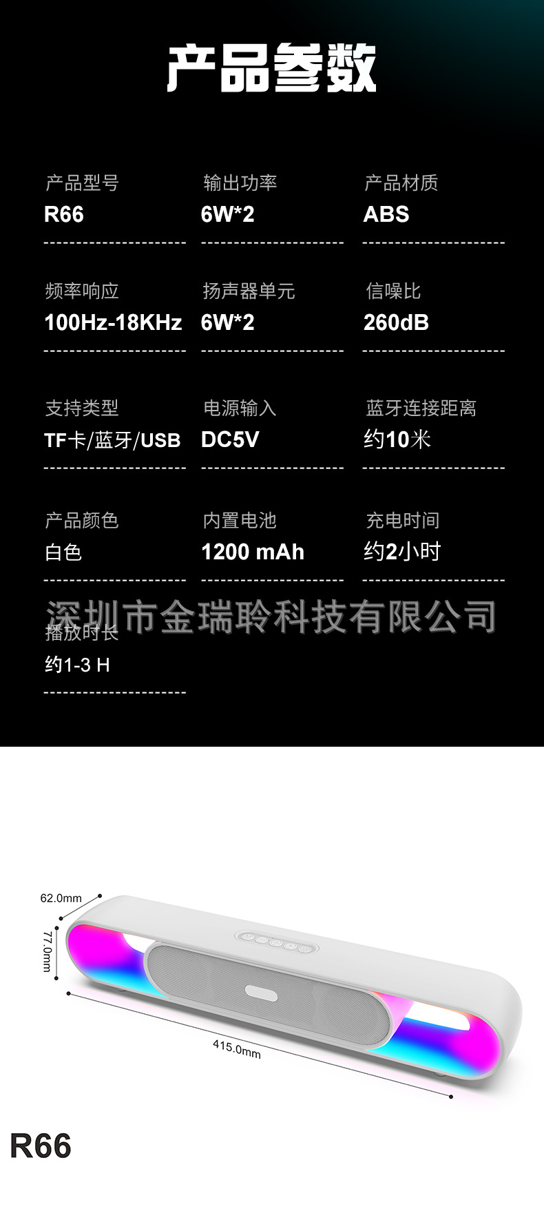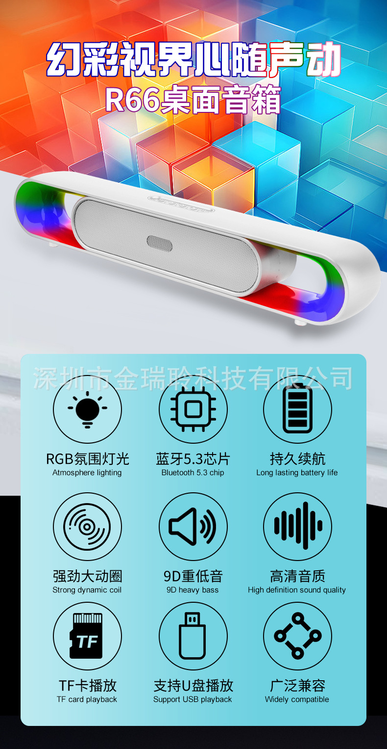 국경을 넘는 R66 블루투스 스피커, 다채로운 조명, 고출력 스피커, 스테레오 데스크탑 스피커, 서브우퍼, 듀얼 스피커
