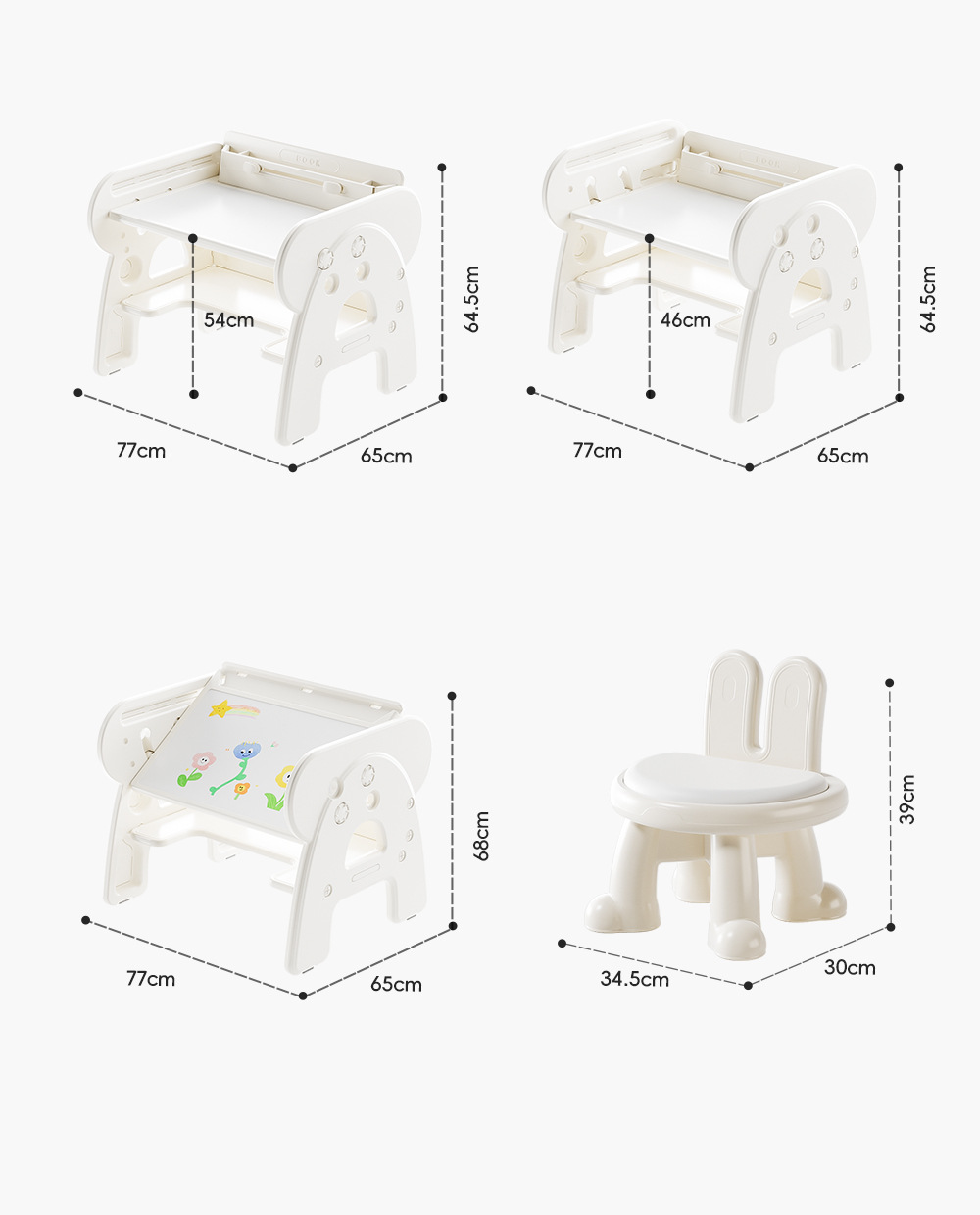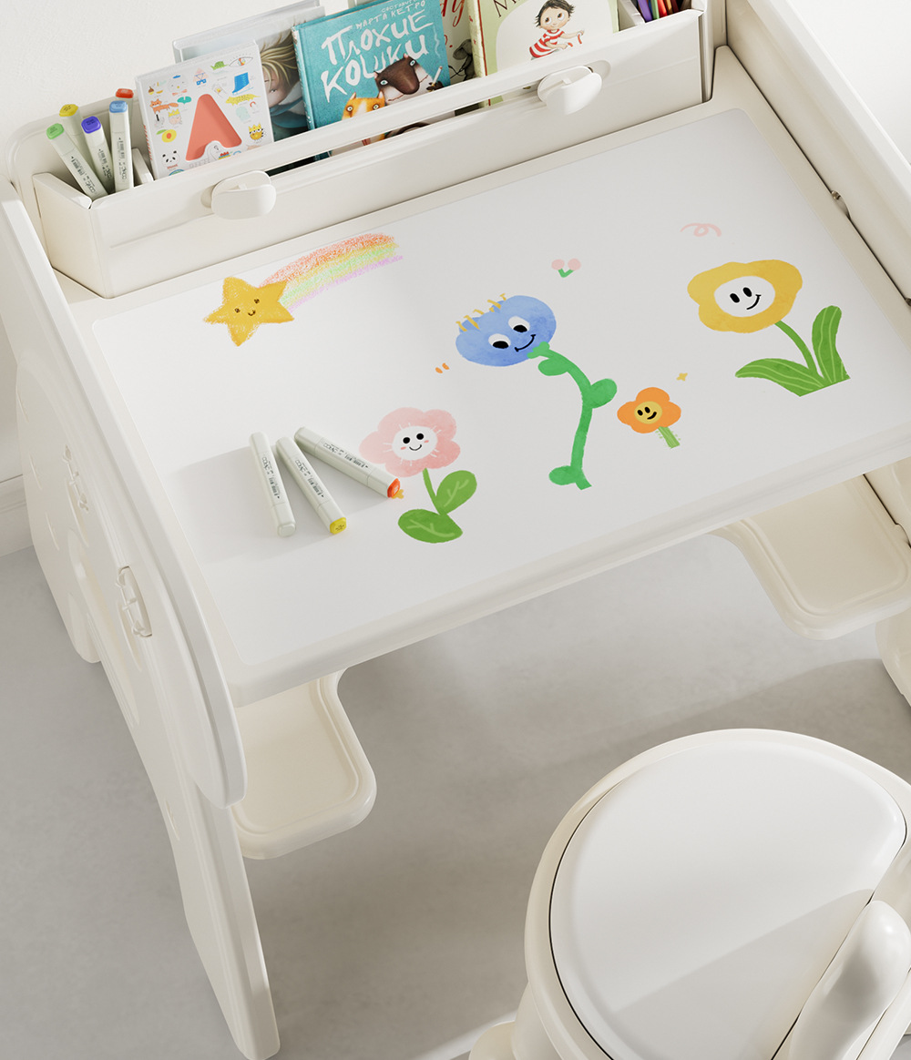 • 학습 테이블 + 구아구아 스툴(페인팅 불가)에는 탈착식 북클립이 함께 제공됩니다.