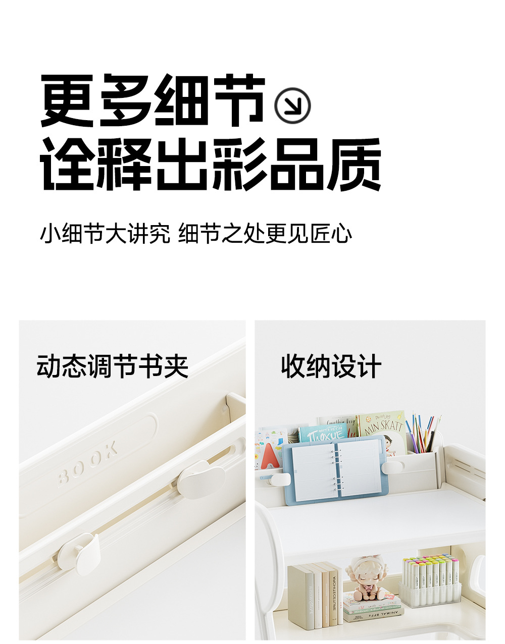 • 학습 테이블(그림) + 구아구아 스툴에는 탈부착 가능한 북클립이 포함되어 있습니다.