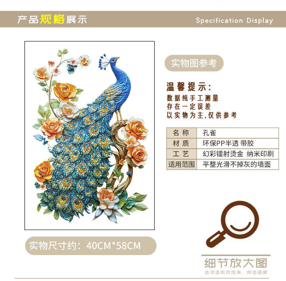 자기 접착 3D 다채로운 레이저 공작 꽃 침실 거실 연구 현관 배경 미화 벽 스티커 문 및 창 장식스토어 가기