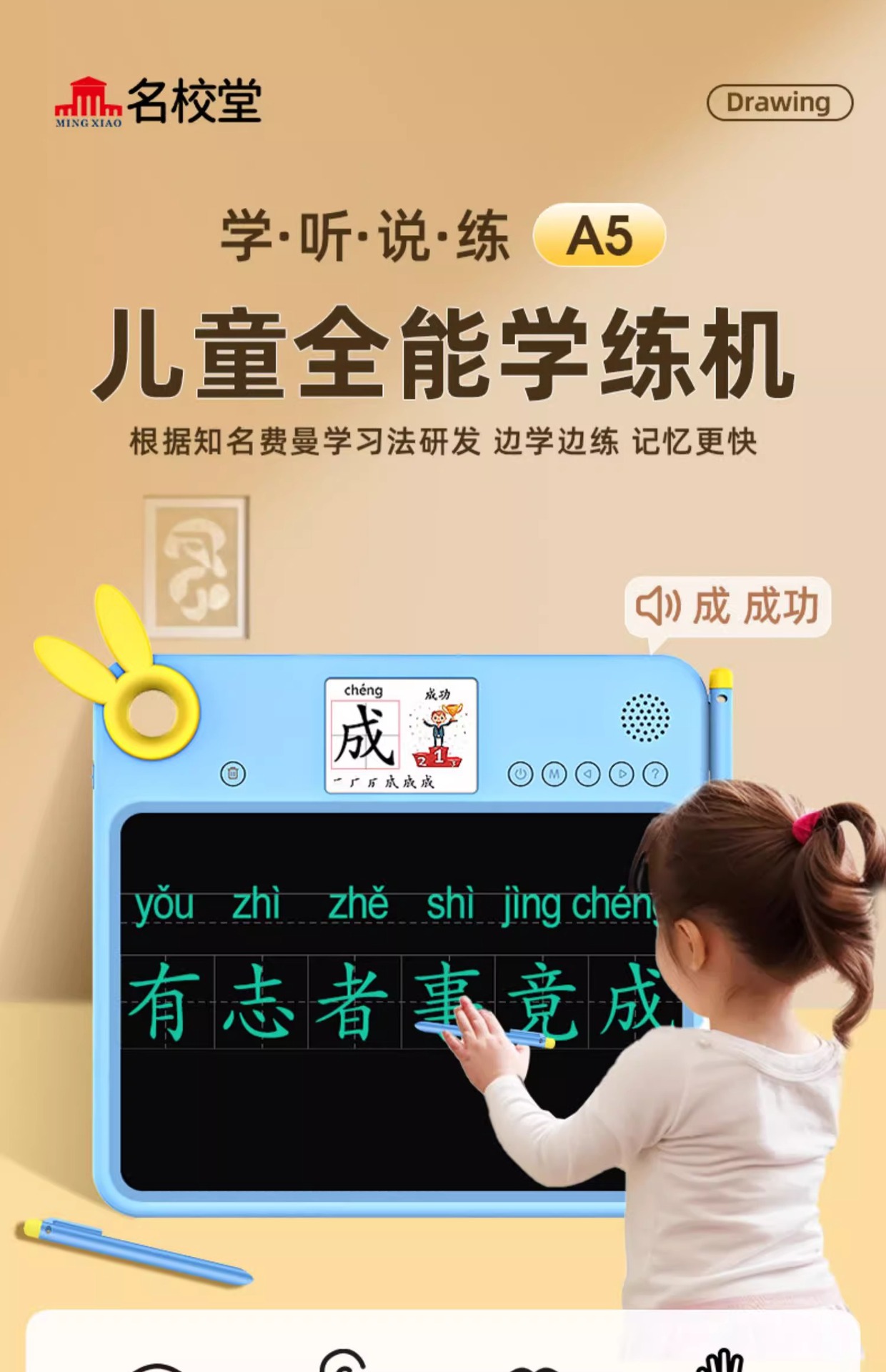 명문학교 어린이 만능 학습기 전자 LCD 그림판 지울 수 있는 낙서판 자석 필기판 A5 홈