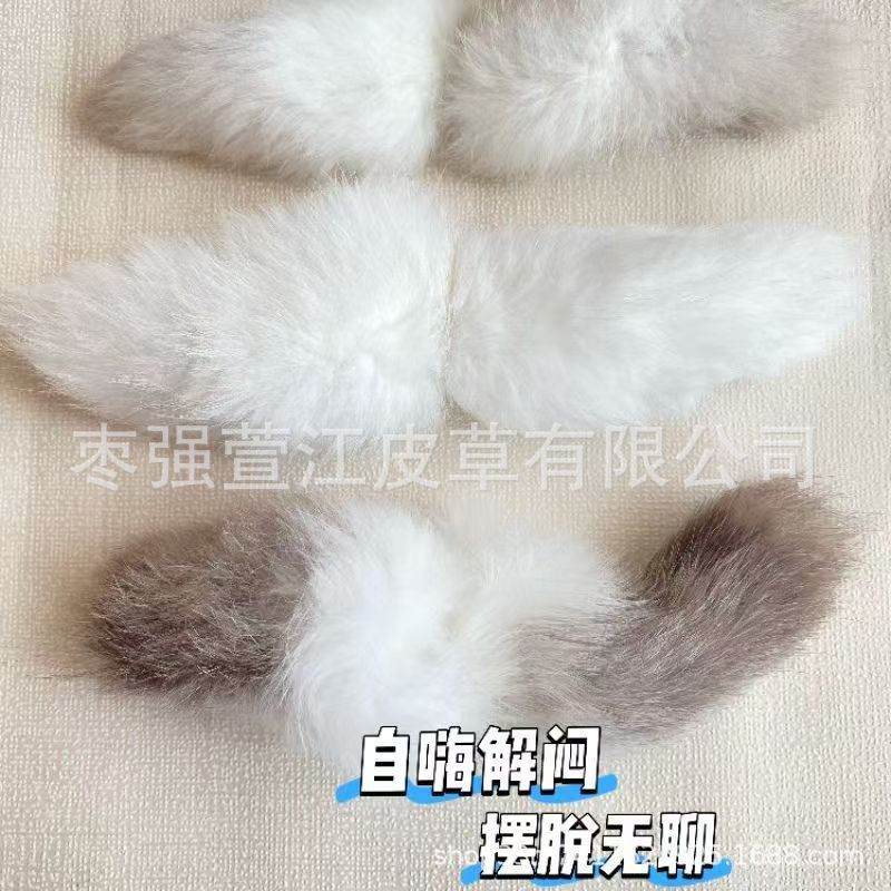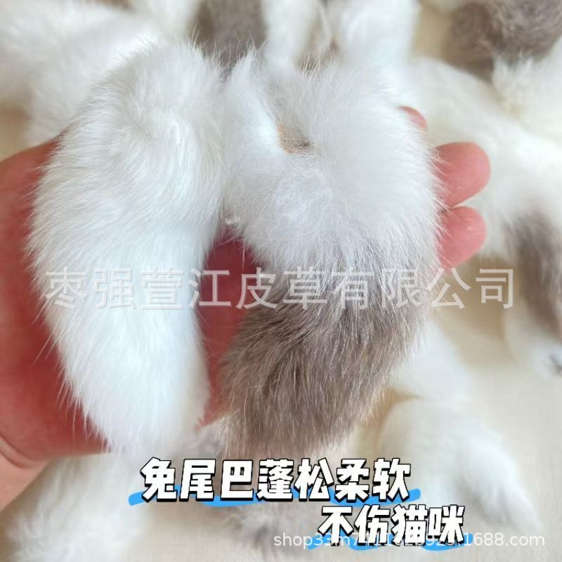 这是一款鞣制,干洗好的真兔尾巴,很干净,天然颜色兔子尾巴。猫咪,小狗可闻嗅,舔,啃咬都是无害的,误食也可正常消化,不必担心。免尾巴内含有尾骨,发硬属正常!不建议大幅度折弯,弯曲折断不属于质量问题。尾巴带有兔子的动物味道,介意的亲亲勿拍!