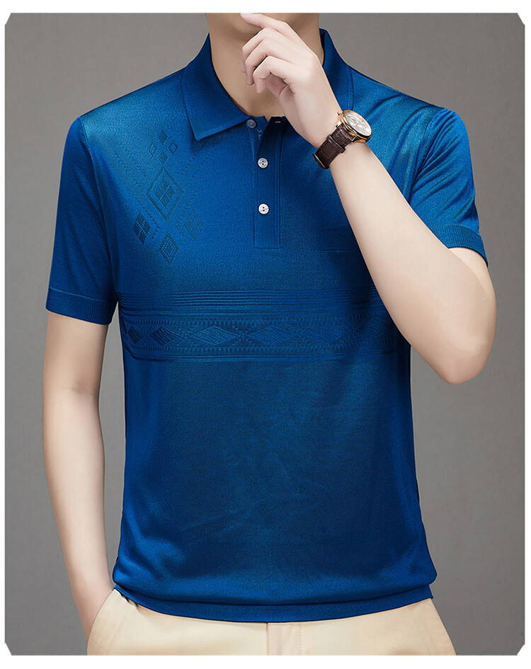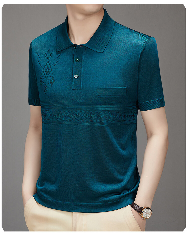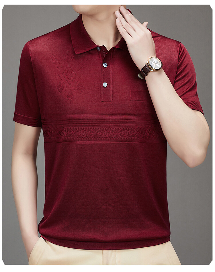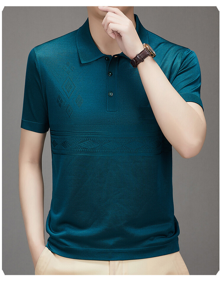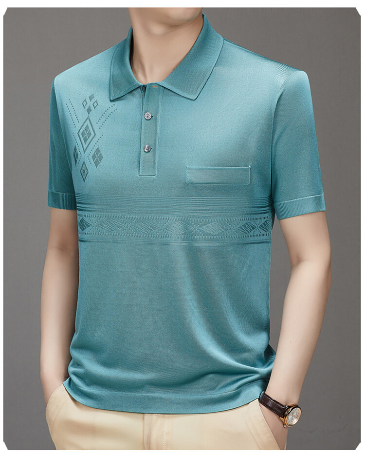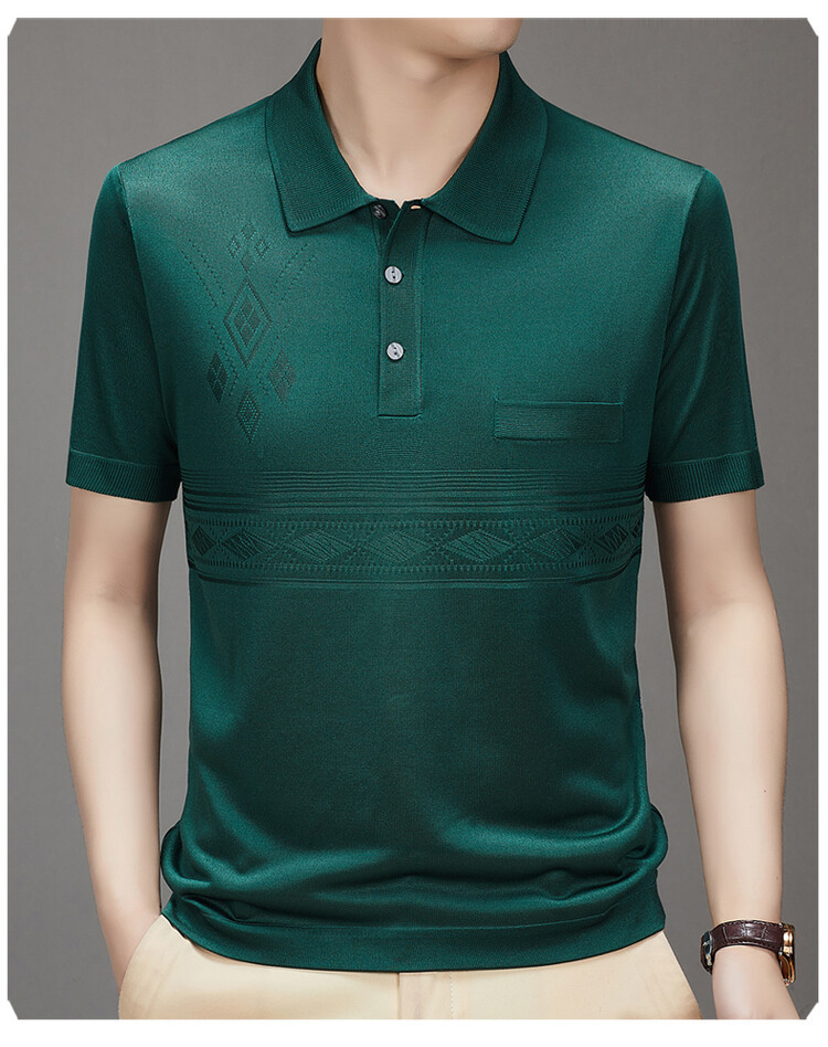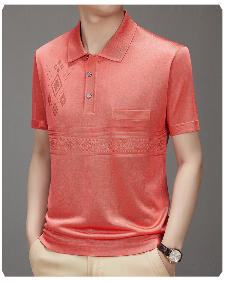 여름 신작 솔리드 컬러 풀오버 루즈한 중년 아빠 셔츠 얇은 반팔 캐주얼 남성 라펠 티셔츠 폴로 셔츠