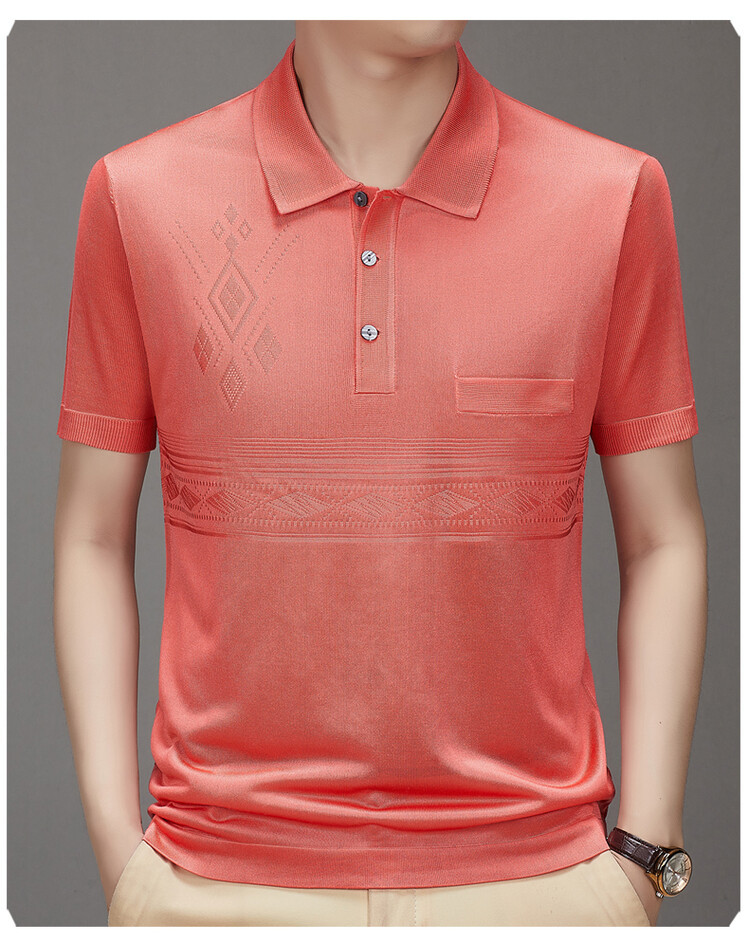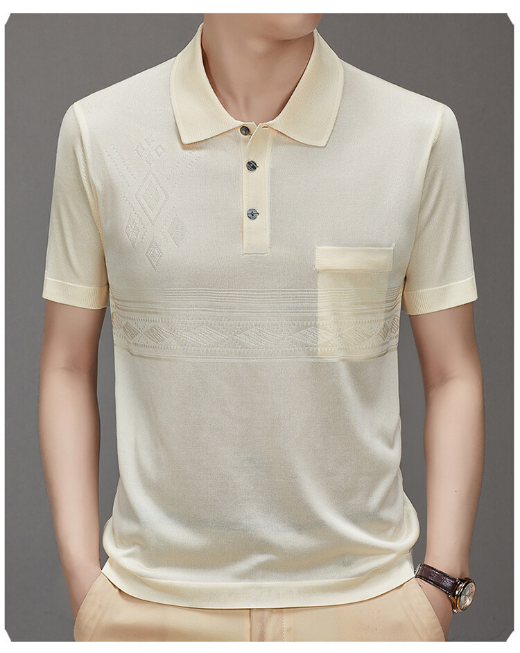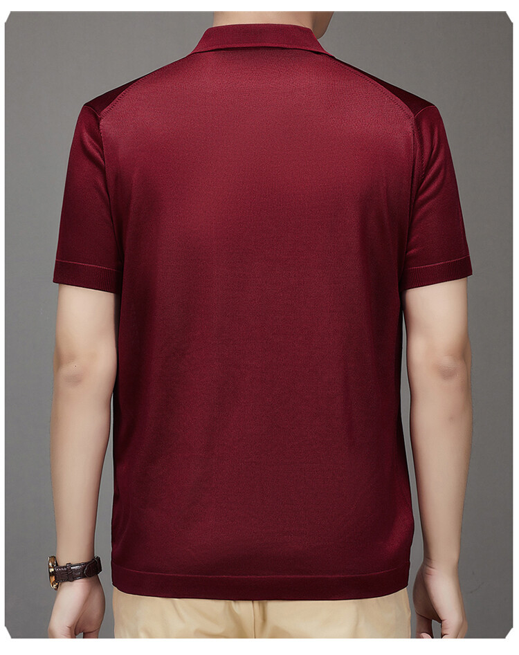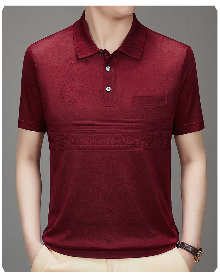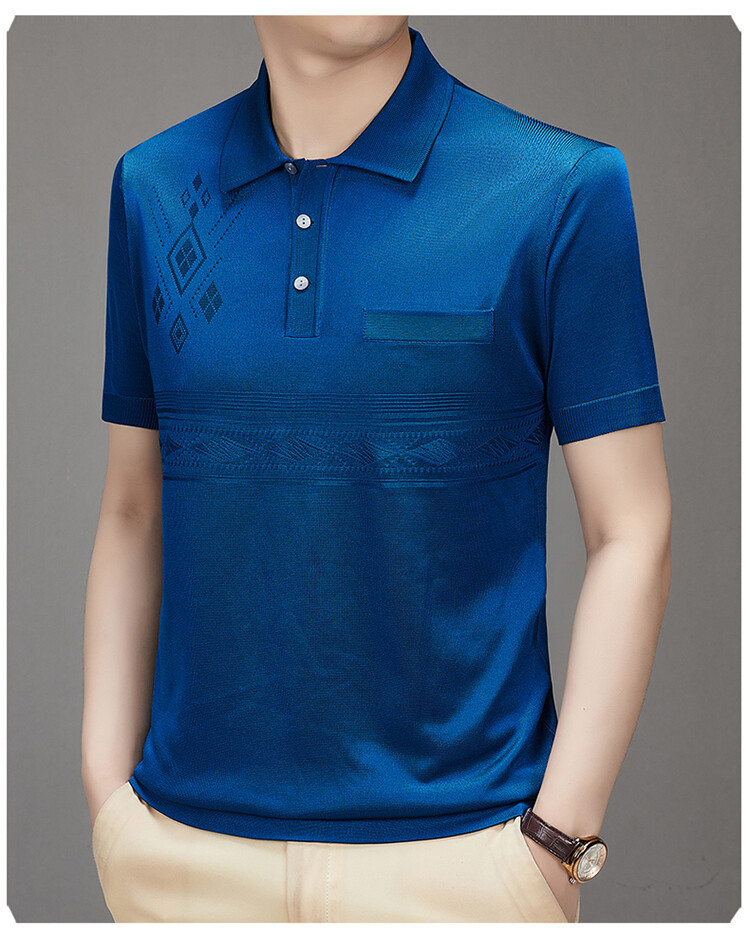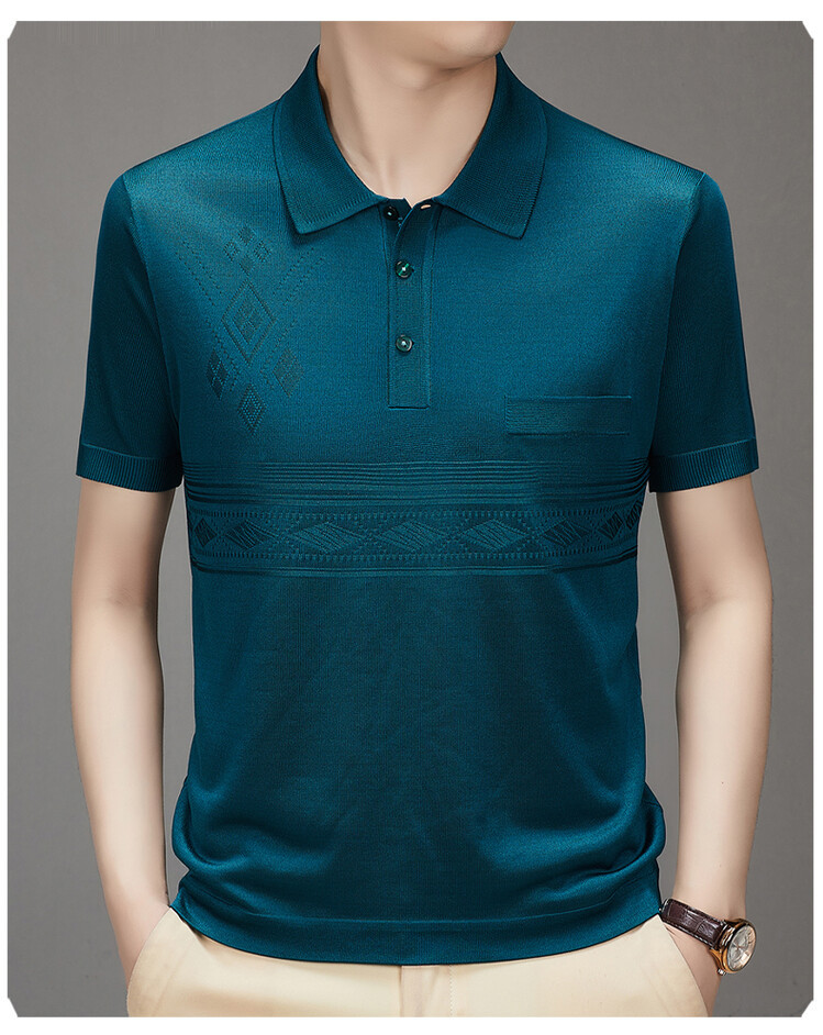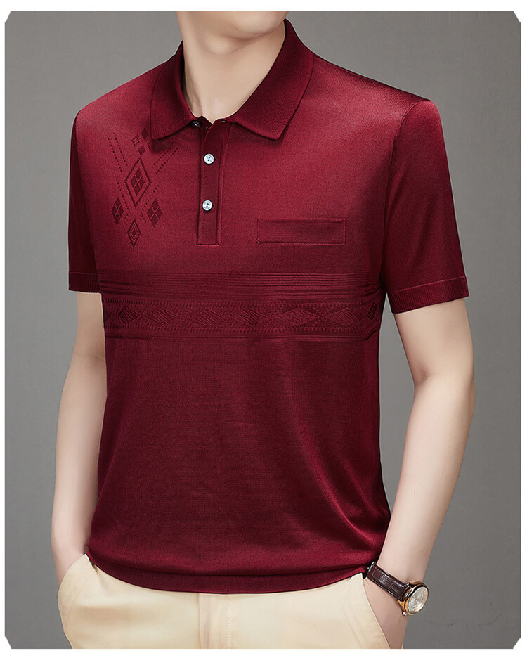 여름 신작 솔리드 컬러 풀오버 루즈한 중년 아빠 셔츠 얇은 반팔 캐주얼 남성 라펠 티셔츠 폴로 셔츠