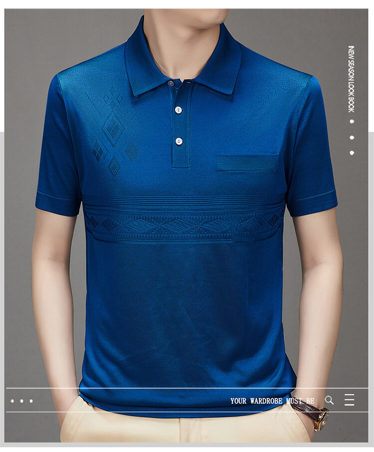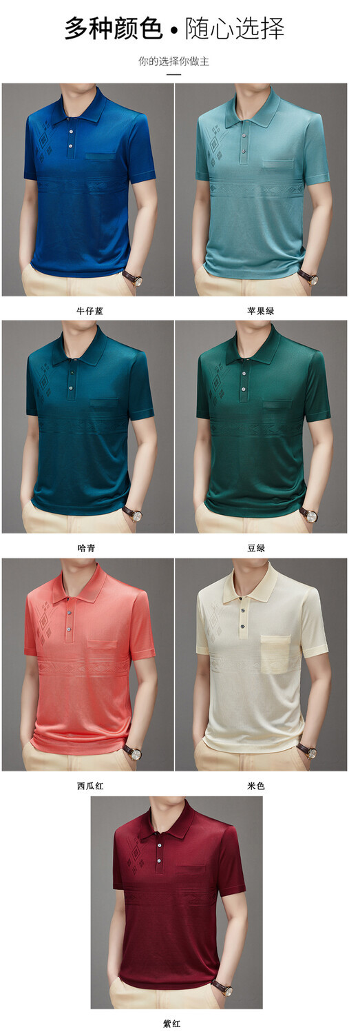 여름 신작 솔리드 컬러 풀오버 루즈한 중년 아빠 셔츠 얇은 반팔 캐주얼 남성 라펠 티셔츠 폴로 셔츠스토어 가기