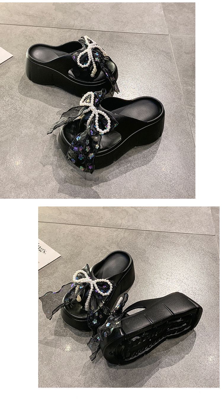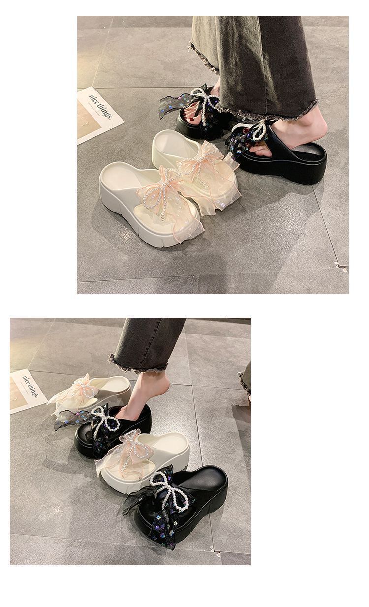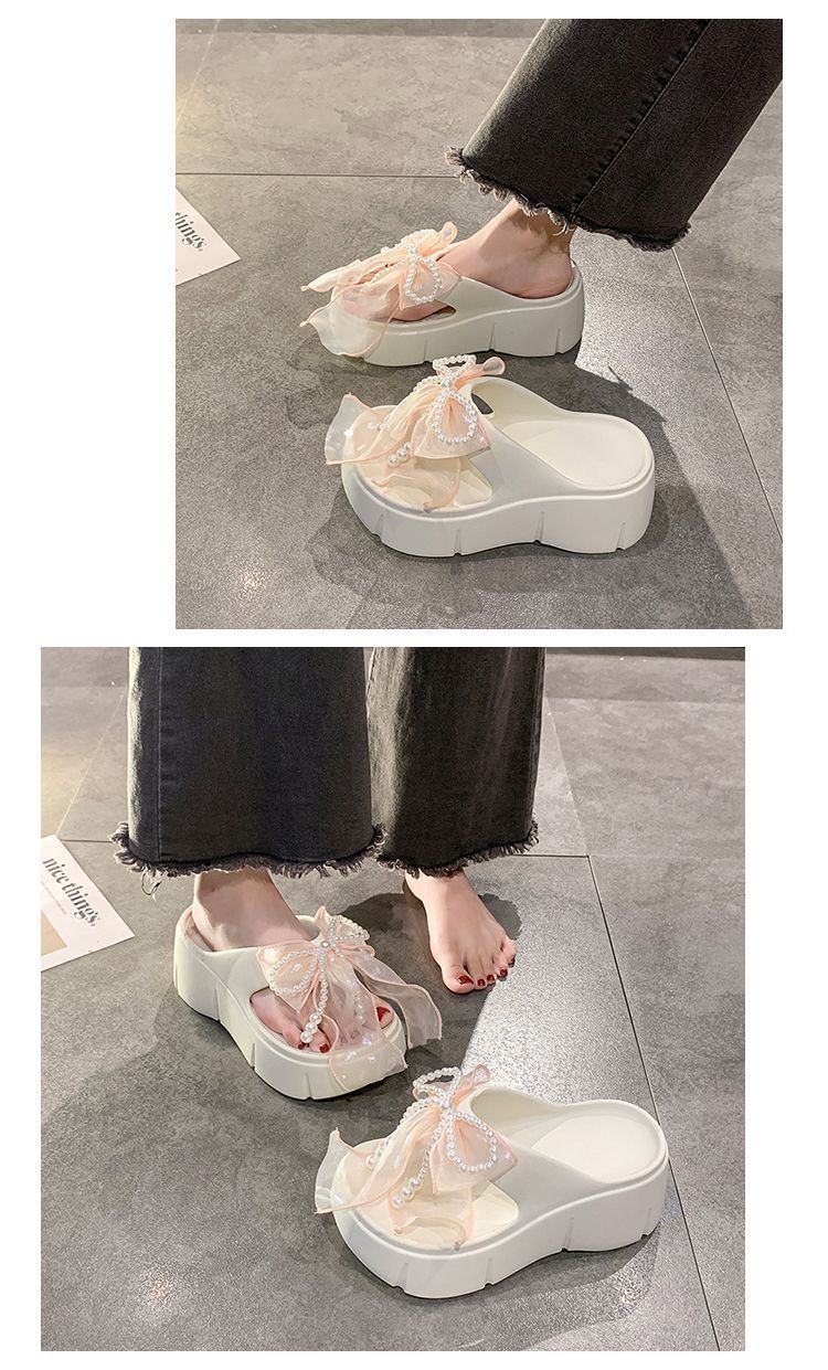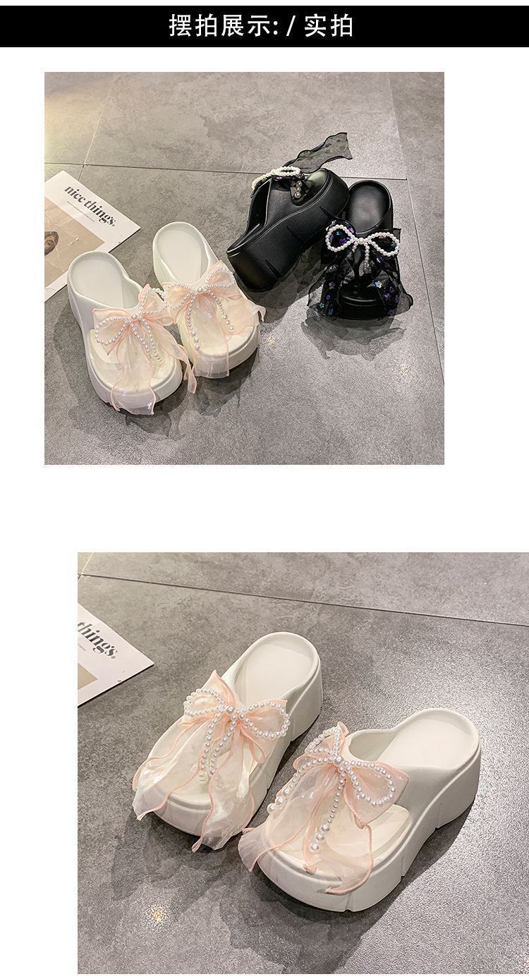 여름 아우터로 입기 좋은 여성을 위한 고급스럽고 귀여운 두꺼운 밑창 슬리퍼 2025 작은 사람들을 위한 가볍고 미끄럼 방지 기질의 리본 슬리퍼
