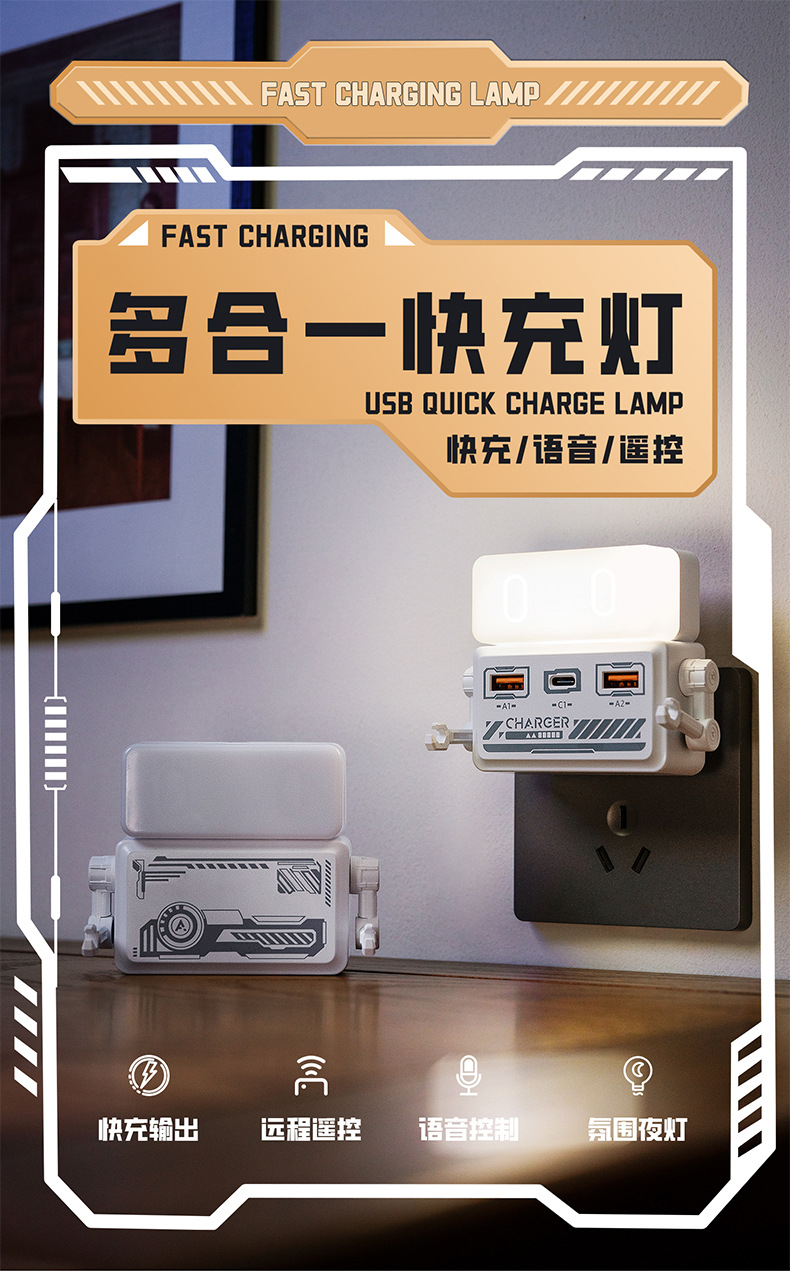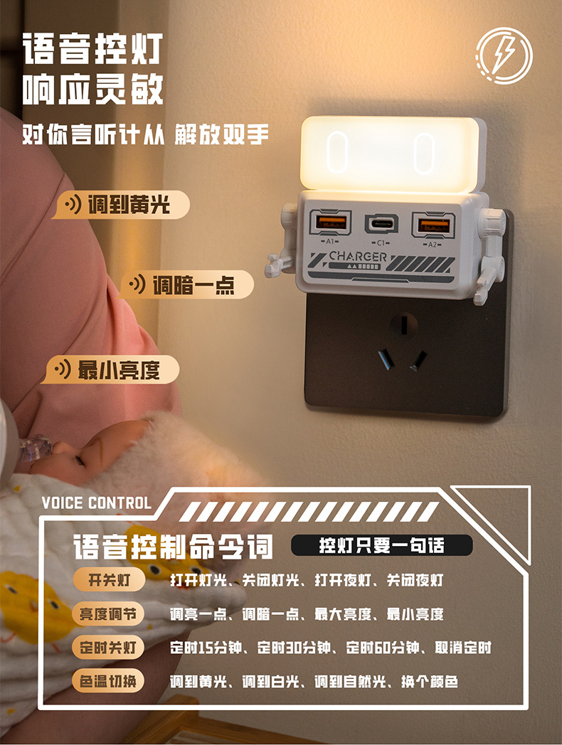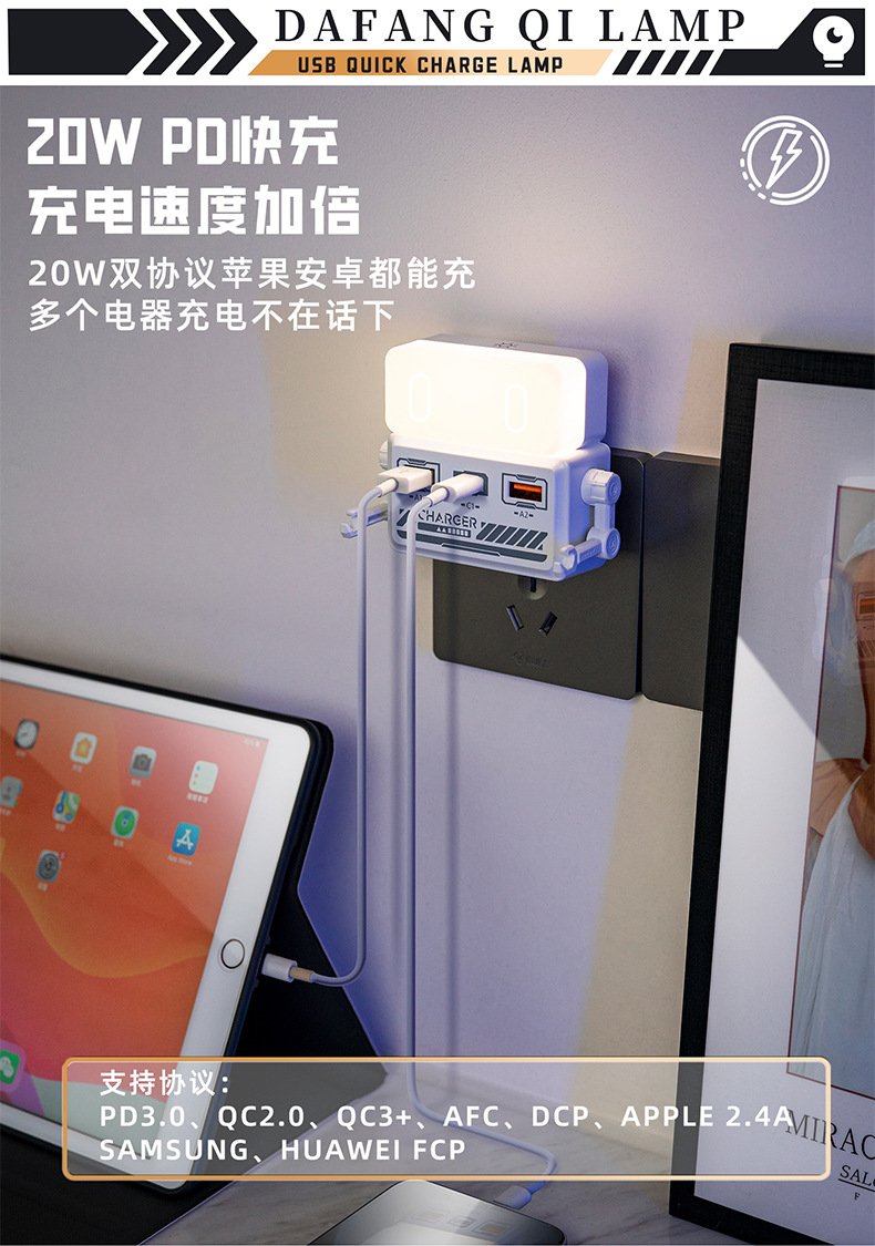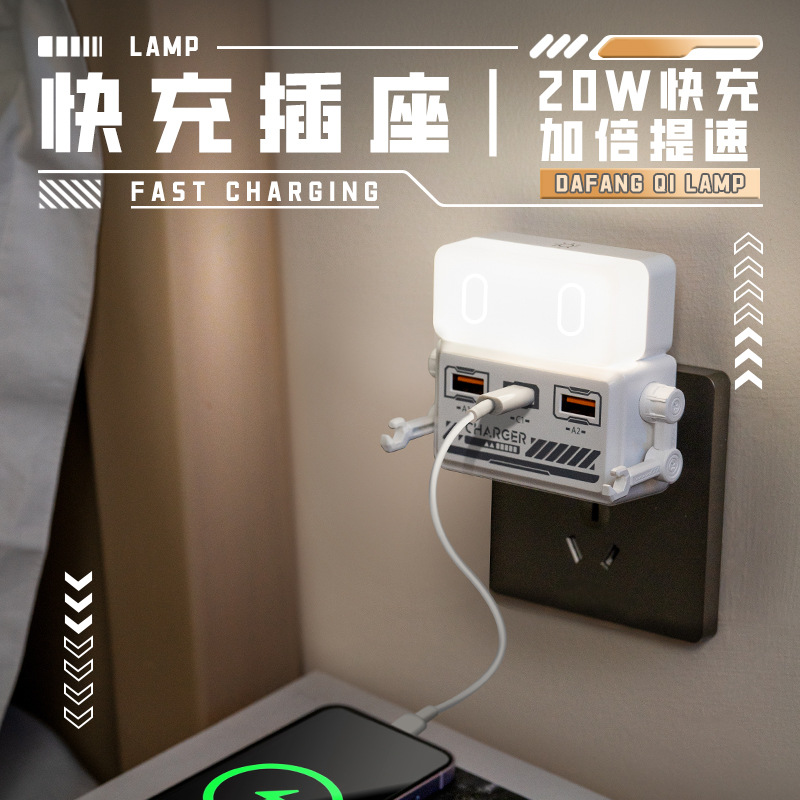 새로운 Tianwo 직접 플러그 충전 침대 옆 야간 조명 USB 휴대 전화 충전 고출력 멀티 포트 고속 충전 소켓 typeC 충전스토어 가기