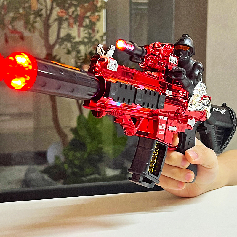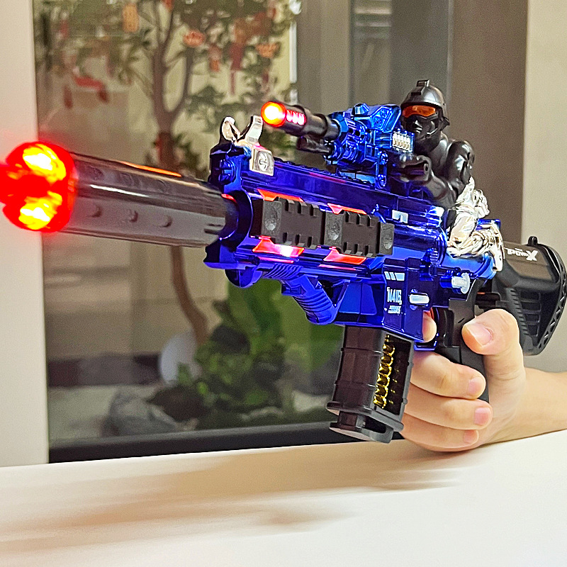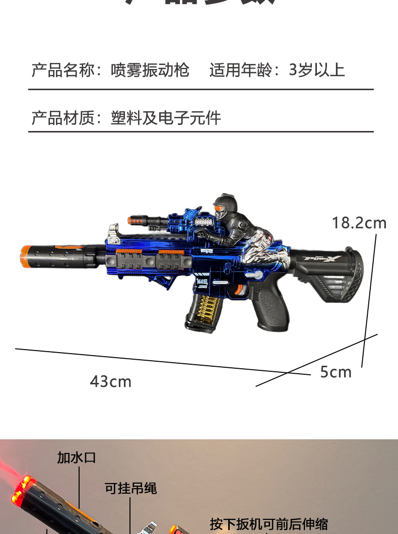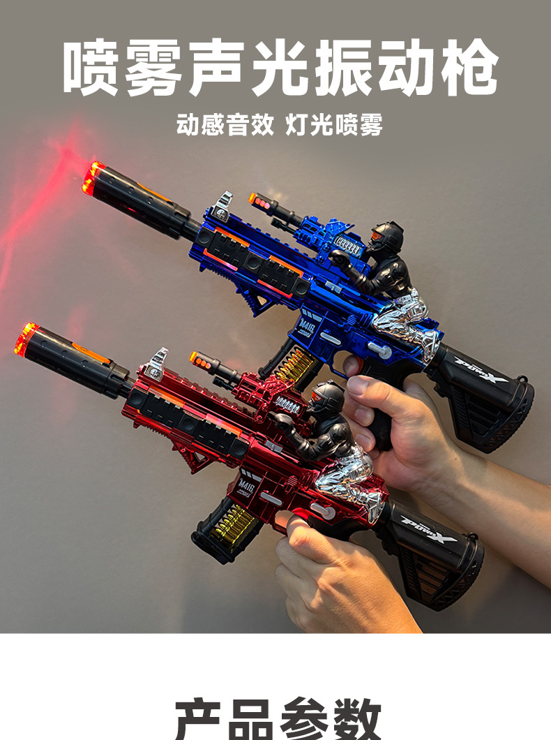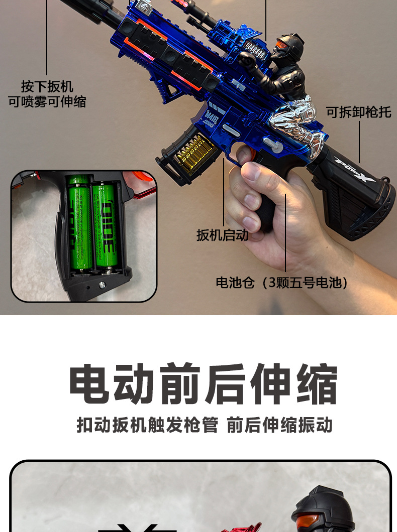 Little Soldier M416 스프레이 건 장난감 어린이 전기 기관단총 텔레스코픽 진동 조명 음향 효과 기관총 도매스토어 가기
