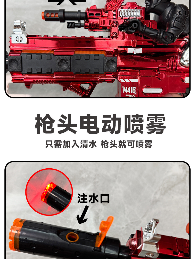 Little Soldier M416 스프레이 건 장난감 어린이 전기 기관단총 텔레스코픽 진동 조명 음향 효과 기관총 도매