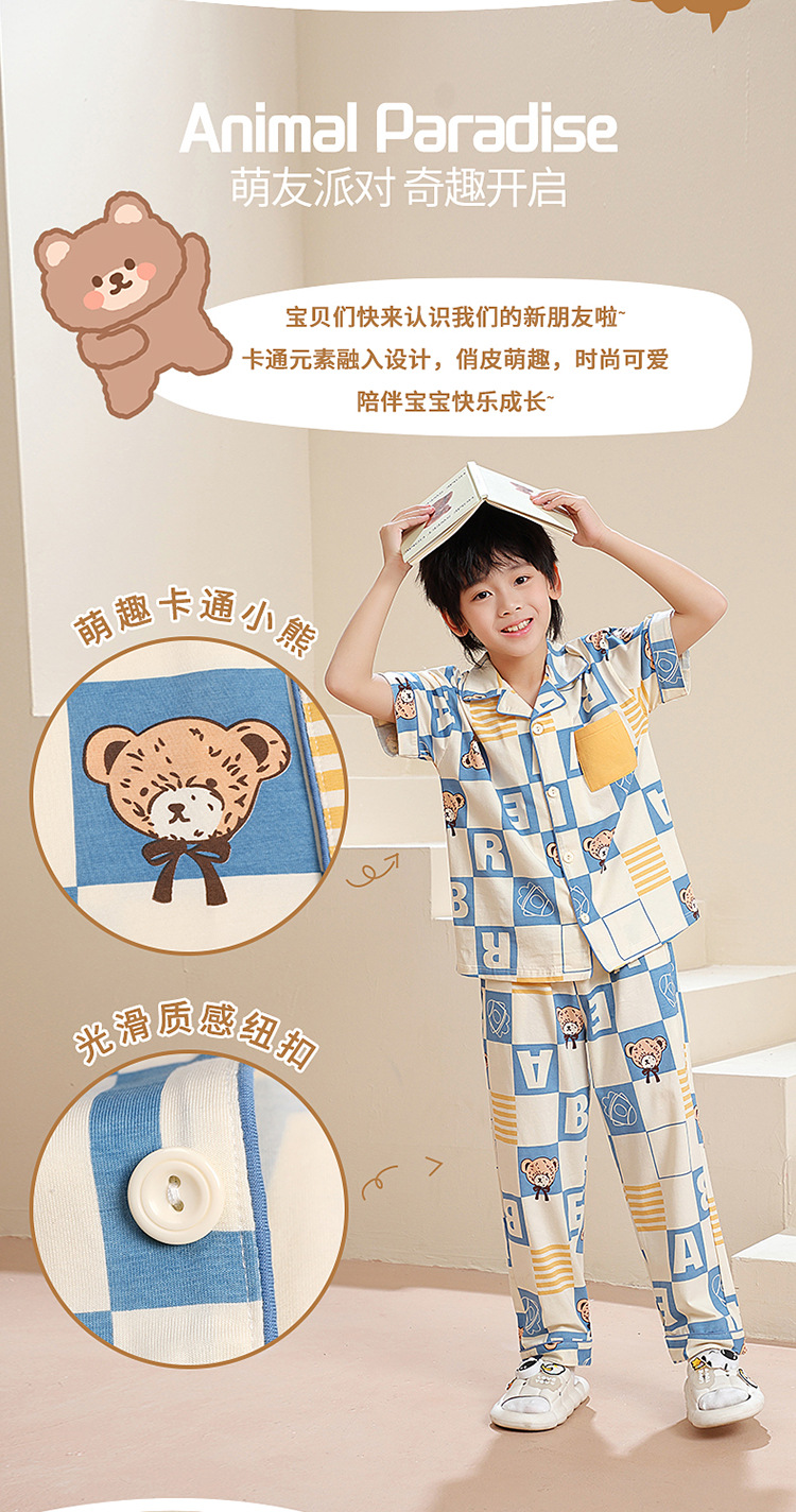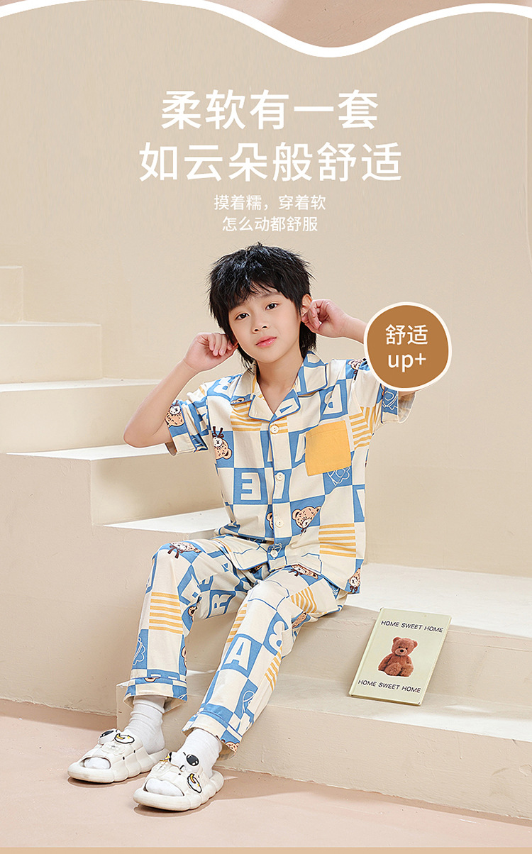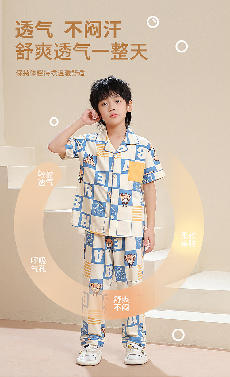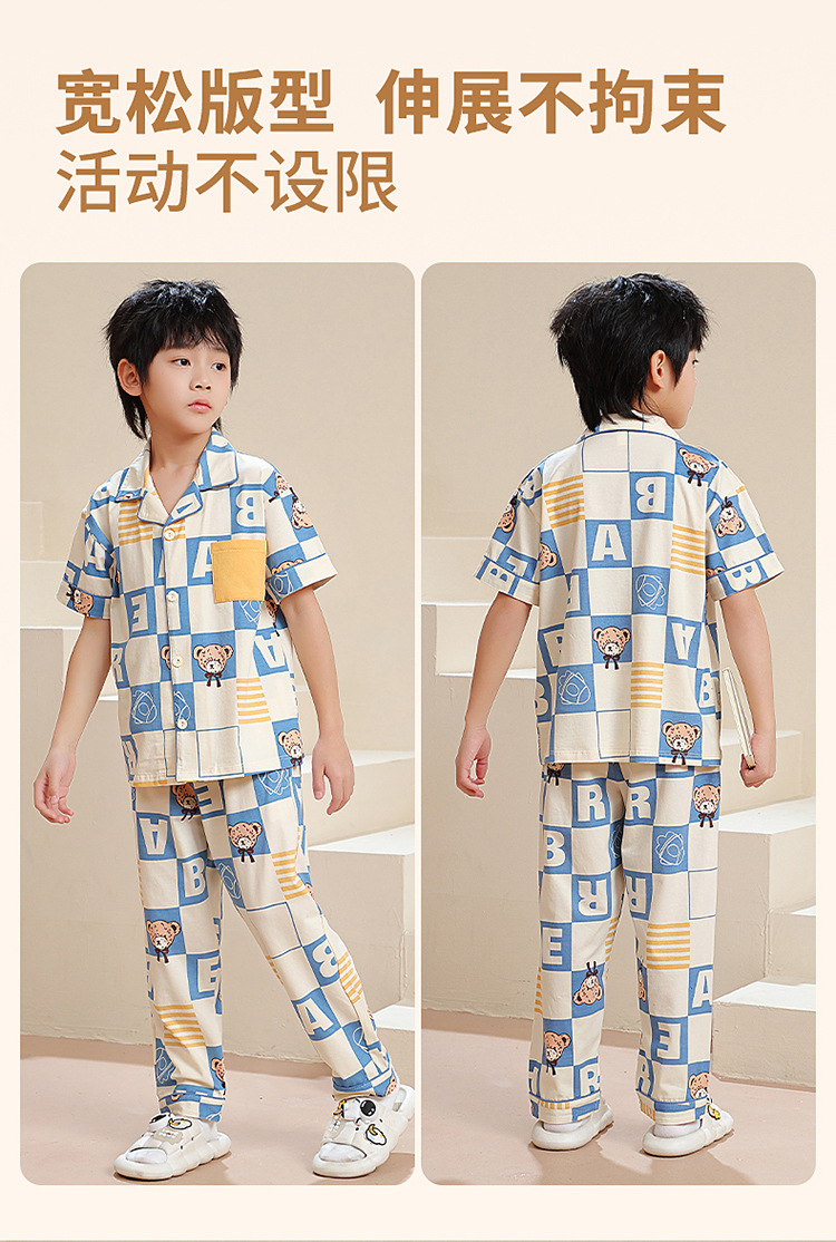 공장 직접 공급 어린이 잠옷 세트 반팔 바지 가정 의류 소년과 소녀 만화 여름 통기성과 편안한스토어 가기