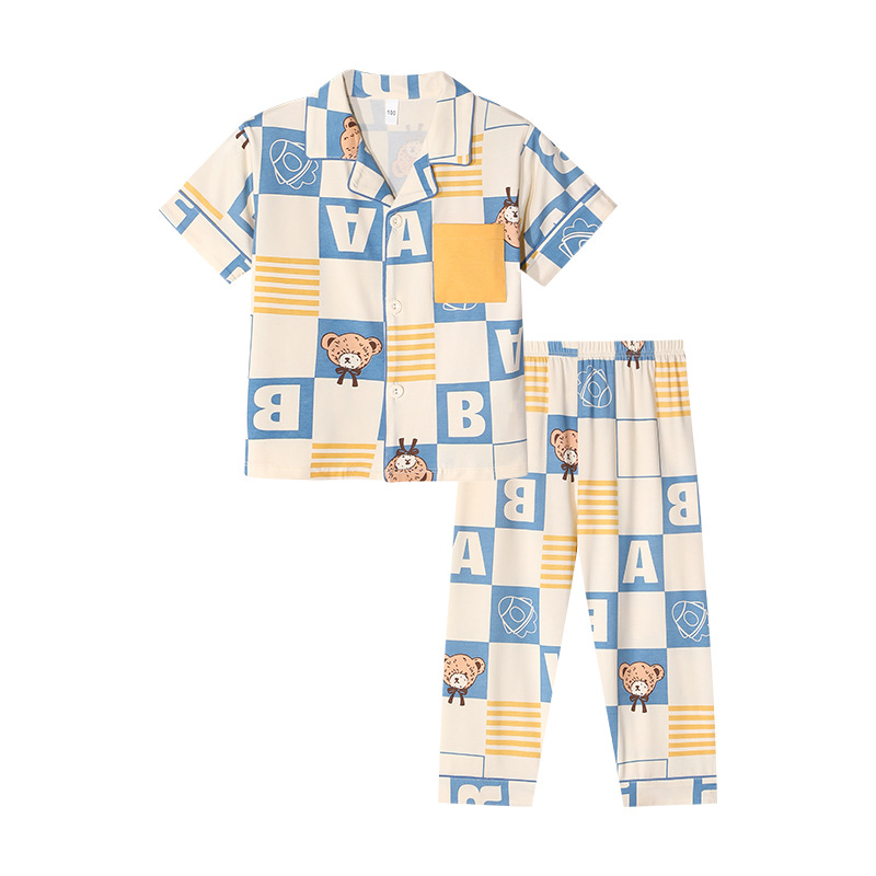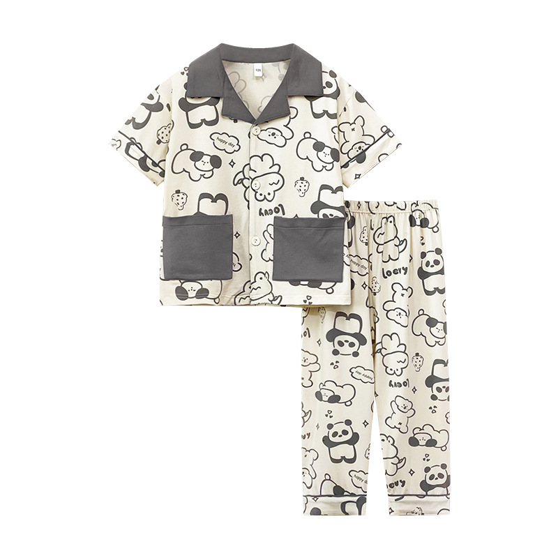 공장 직접 공급 어린이 잠옷 세트 반팔 바지 가정 의류 소년과 소녀 만화 여름 통기성과 편안한