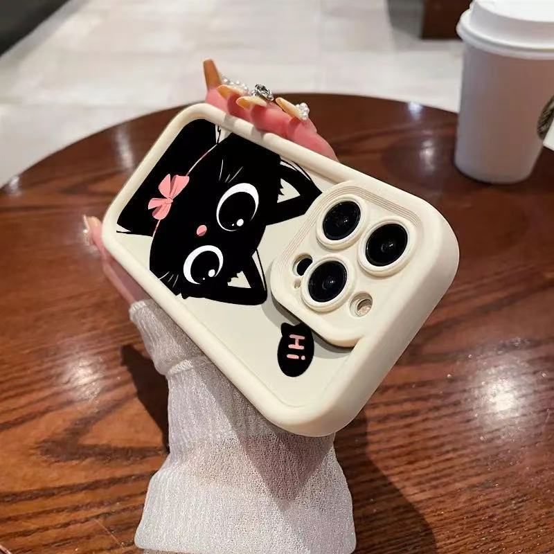 귀여운 고양이 디자인의 애플 17Promax 휴대폰 케이스, 일본과 한국의 인스타 감성, iPhone16/15/14/유럽과 미국의 13/스토어 가기