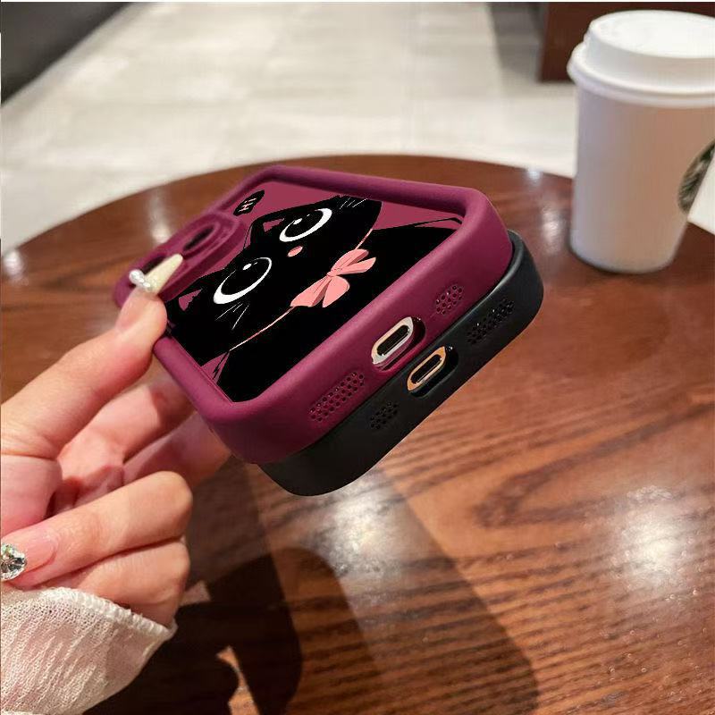 귀여운 고양이 디자인의 애플 17Promax 휴대폰 케이스, 일본과 한국의 인스타 감성, iPhone16/15/14/유럽과 미국의 13/