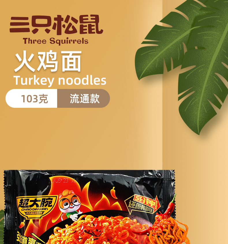 다람쥐 세 마리 칠면조 국수 103g, 매콤하고 상큼하며 손목이 큰 사이즈로 늦은 밤에 간편하게 먹을 수 있어 매콤함 없이도 즐겁습니다.