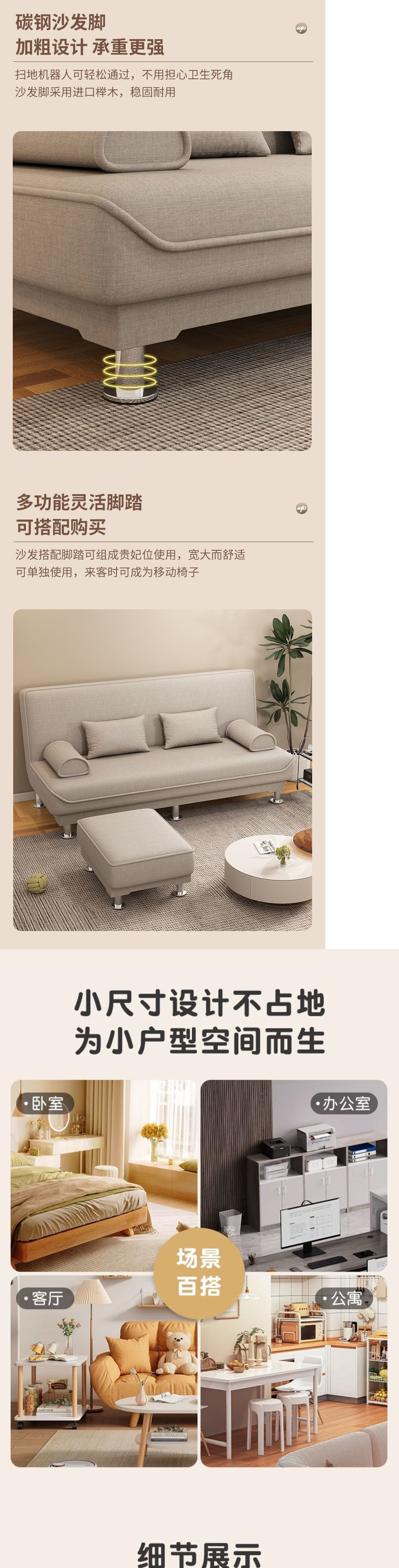 새로운 소파 소파 침대 이중 목적 접이식 가구 패브릭 소파 2인용 3인용 거실 임대 룸 게으른 소파스토어 가기