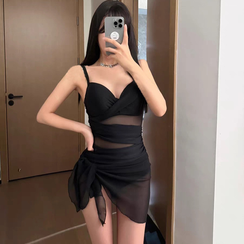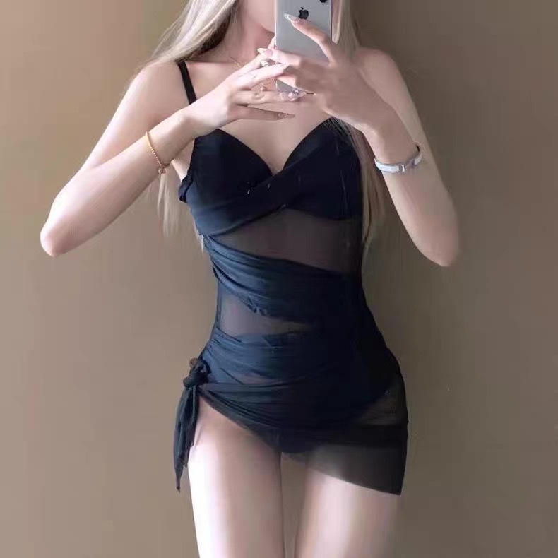 해변 휴가를 즐기는 여성을 위한 고급 원피스 거즈 스커트 수영복, 보수적이고 복고풍이며 섹시하고 심플하며 고급스럽고 작은 가슴을 모아줍니다.스토어 가기